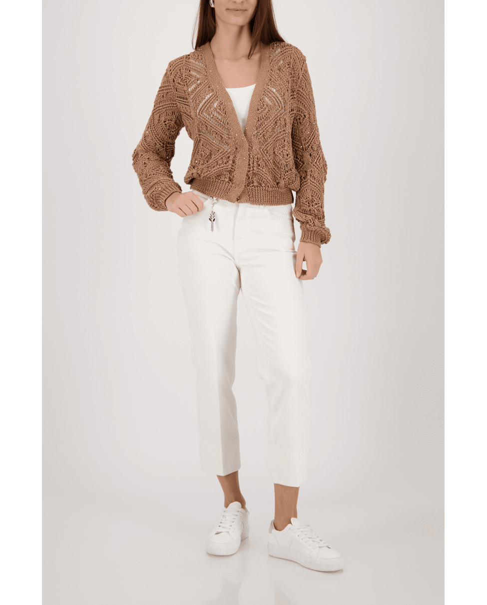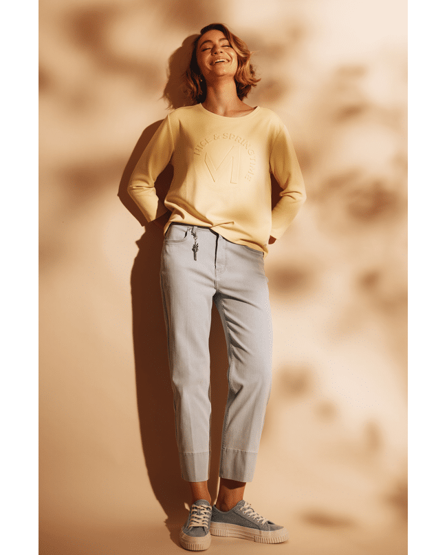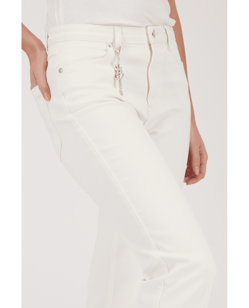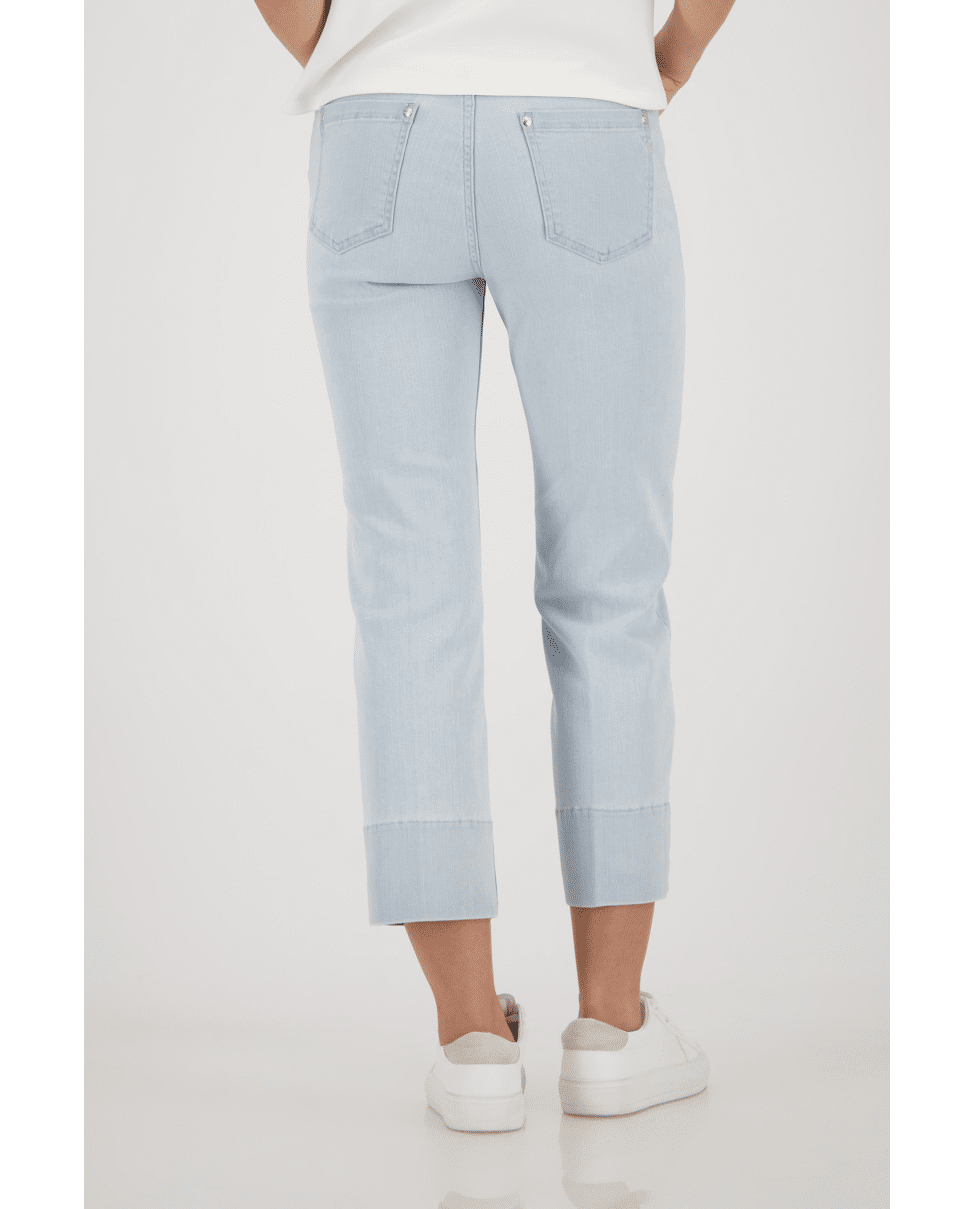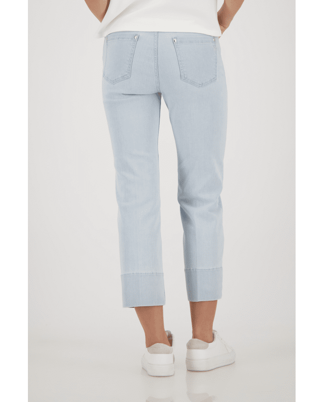 Deze 7/8 jeans van Monari is een frisse toevoeging aan je lente- en zomergarderobe. De hanger aan de riemlus geeft een subtiele knipoog.