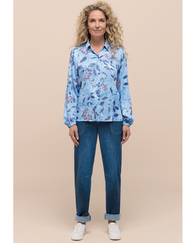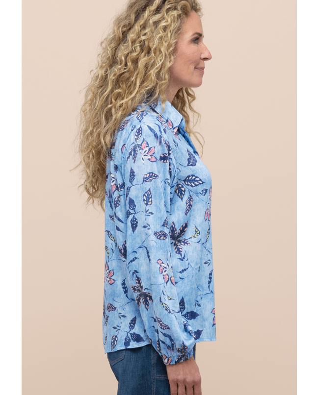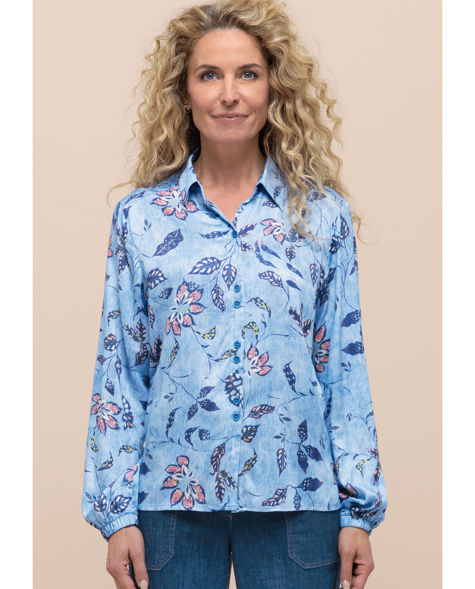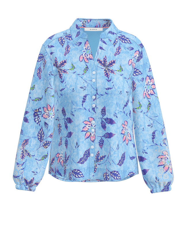 Deze luchtige blouse van Bianca met botanische print in levendige blauwtinten is perfect voor zonnige lentedagen. De lichte viscose voelt soepel aan en valt mooi om het lichaam – ideaal voor zowel werk als vrije tijd.