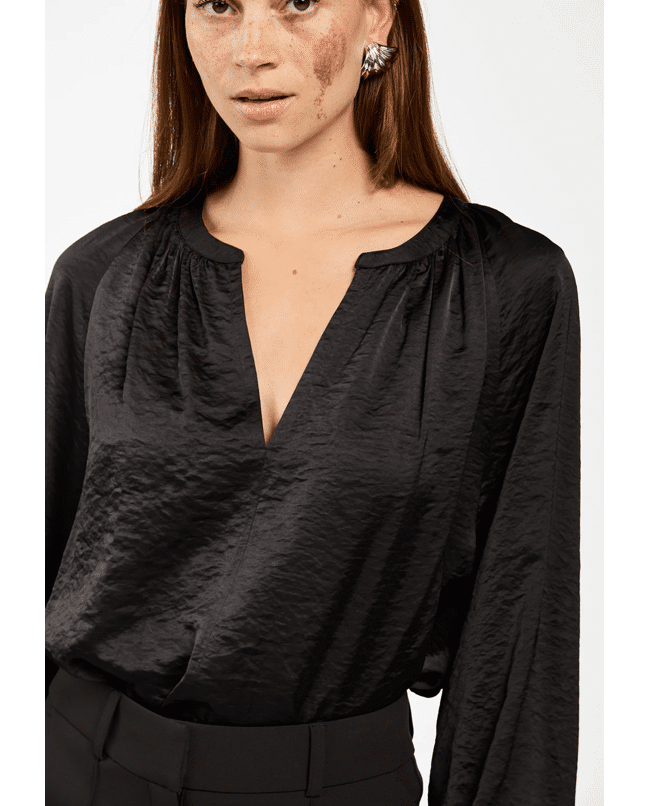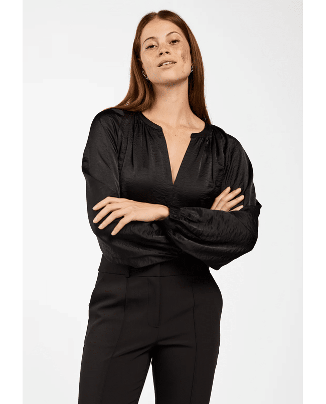 De Alanza blouse van Aaiko is een veelzijdige top met subtiele glans. Ideaal voor kantoor, diner of een casual dag met een elegante twist.