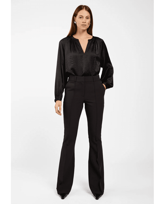 De luchtige stof valt soepel rond het lichaam, terwijl de geplooide schouders en V-hals zorgen voor een vrouwelijk accent. Combineer met de Chantalle broek.