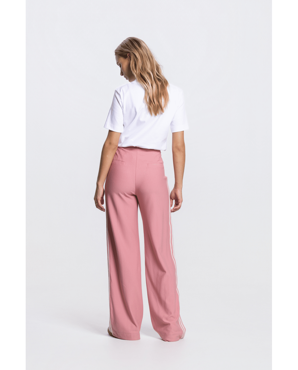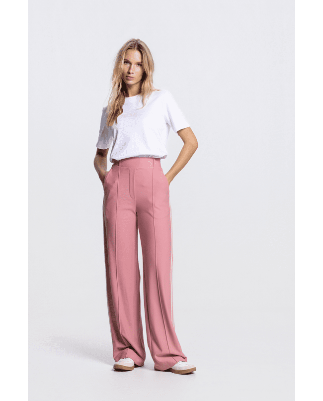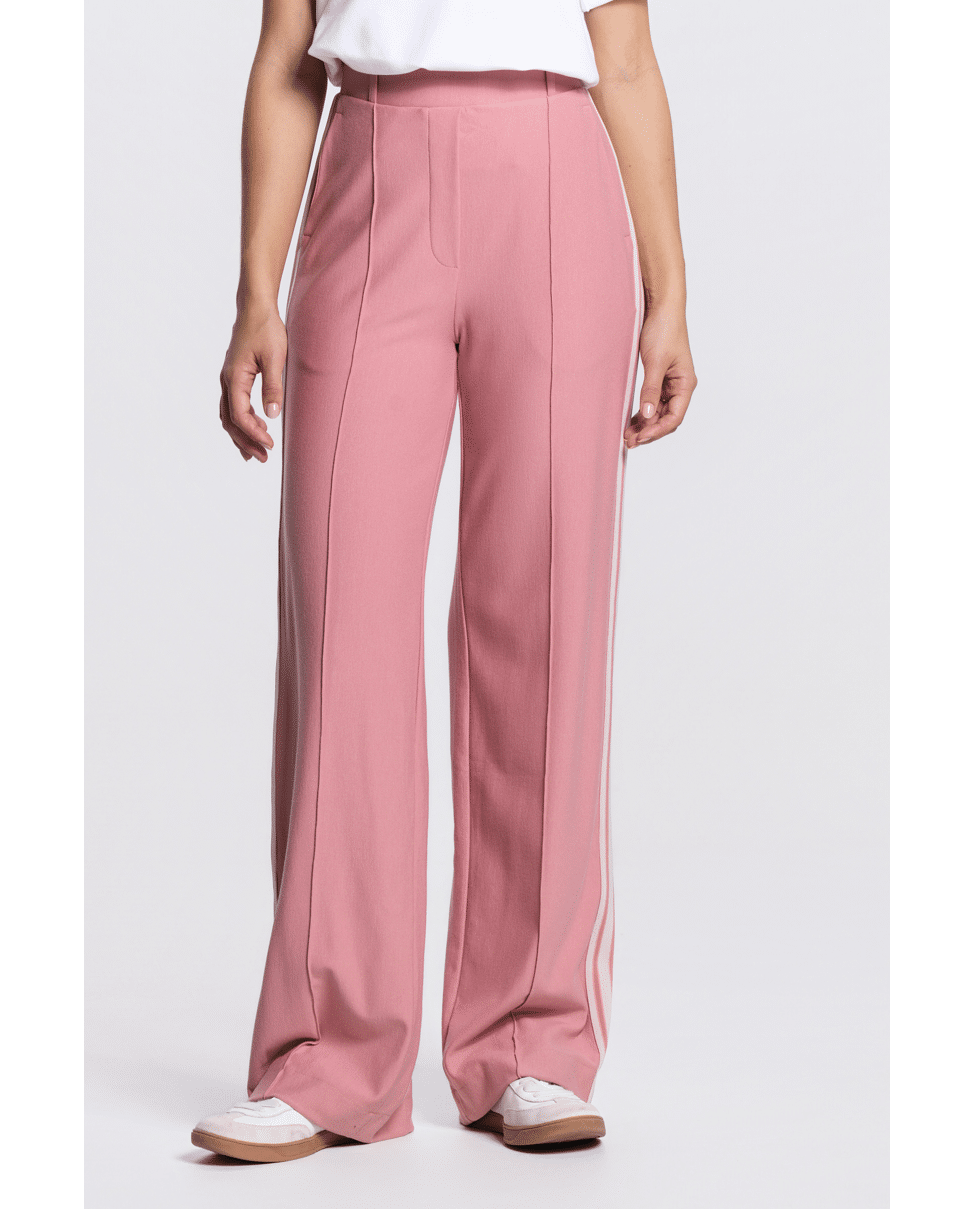 De contrasterende bies aan de zijkant geeft een moderne twist aan het klassieke joggingmodel. Perfect te dragen met sneakers of een luchtige blouse.