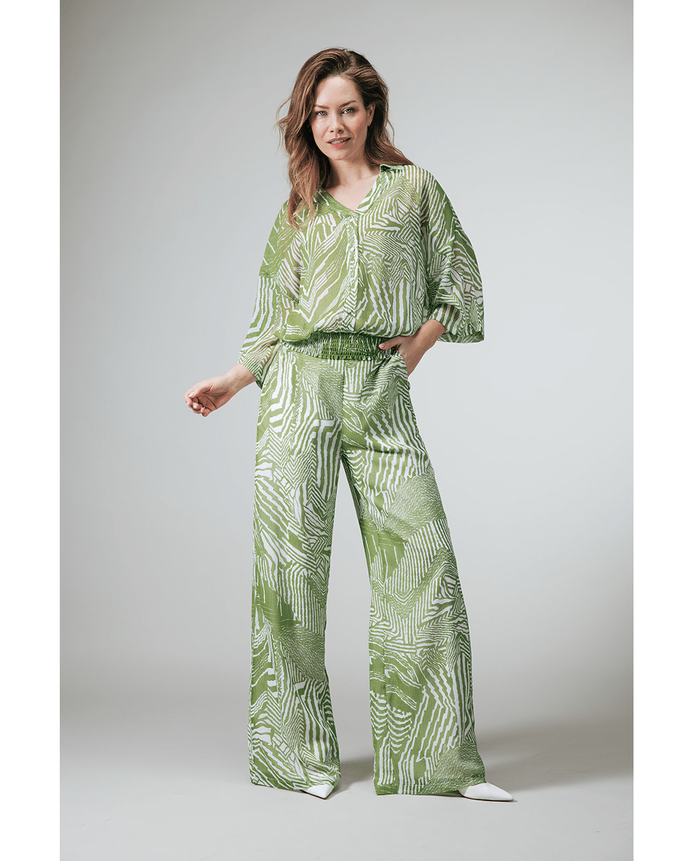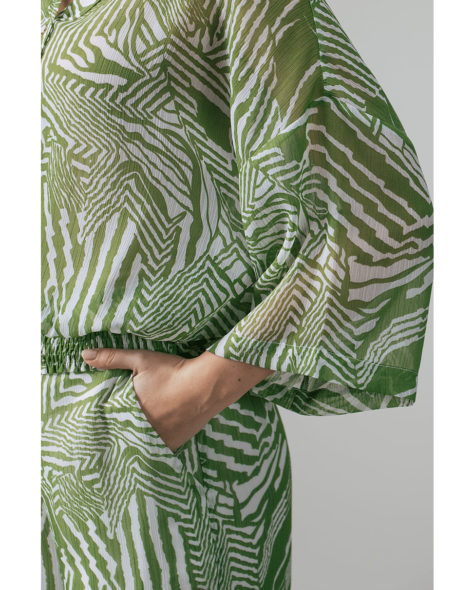 •Grafische print in groen en wit