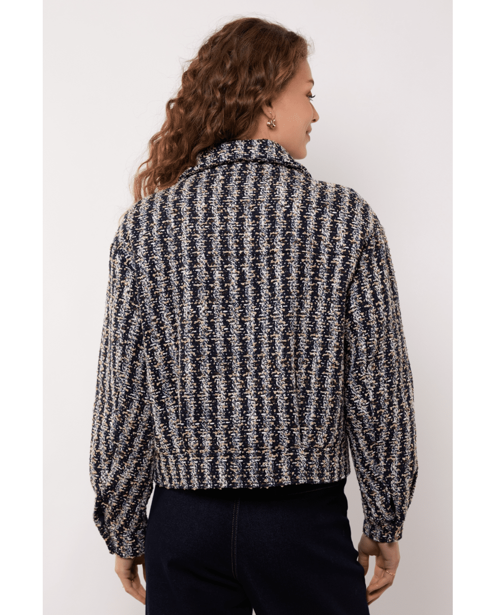 De kleurenmix geeft dit jasje karakter, terwijl de rechte pasvorm zorgt voor een moderne uitstraling.