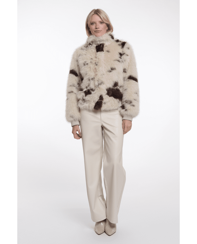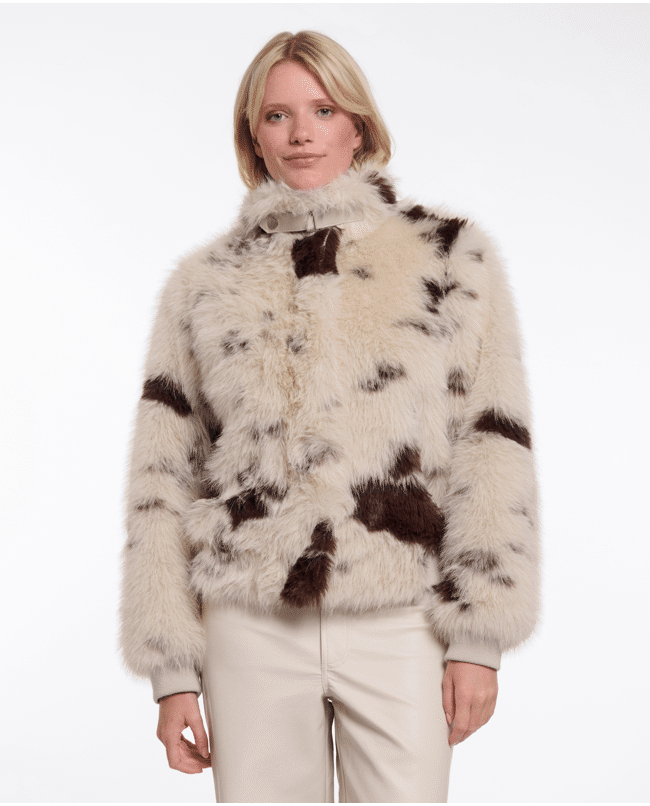 Ambra – Dames teddyjas van Rino&Pelle met opstaande hals, imitatiebont, ritssluiting en steekzakken