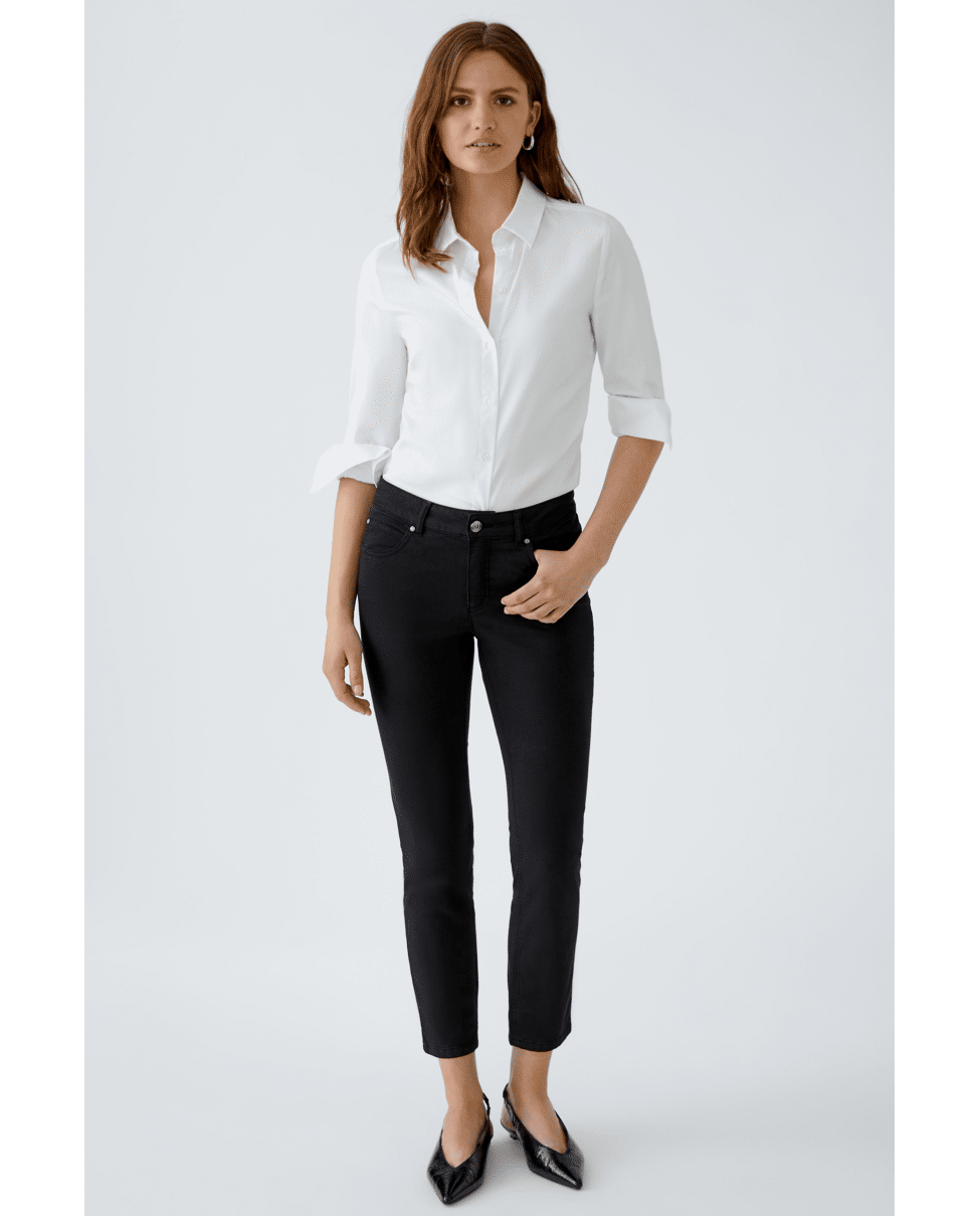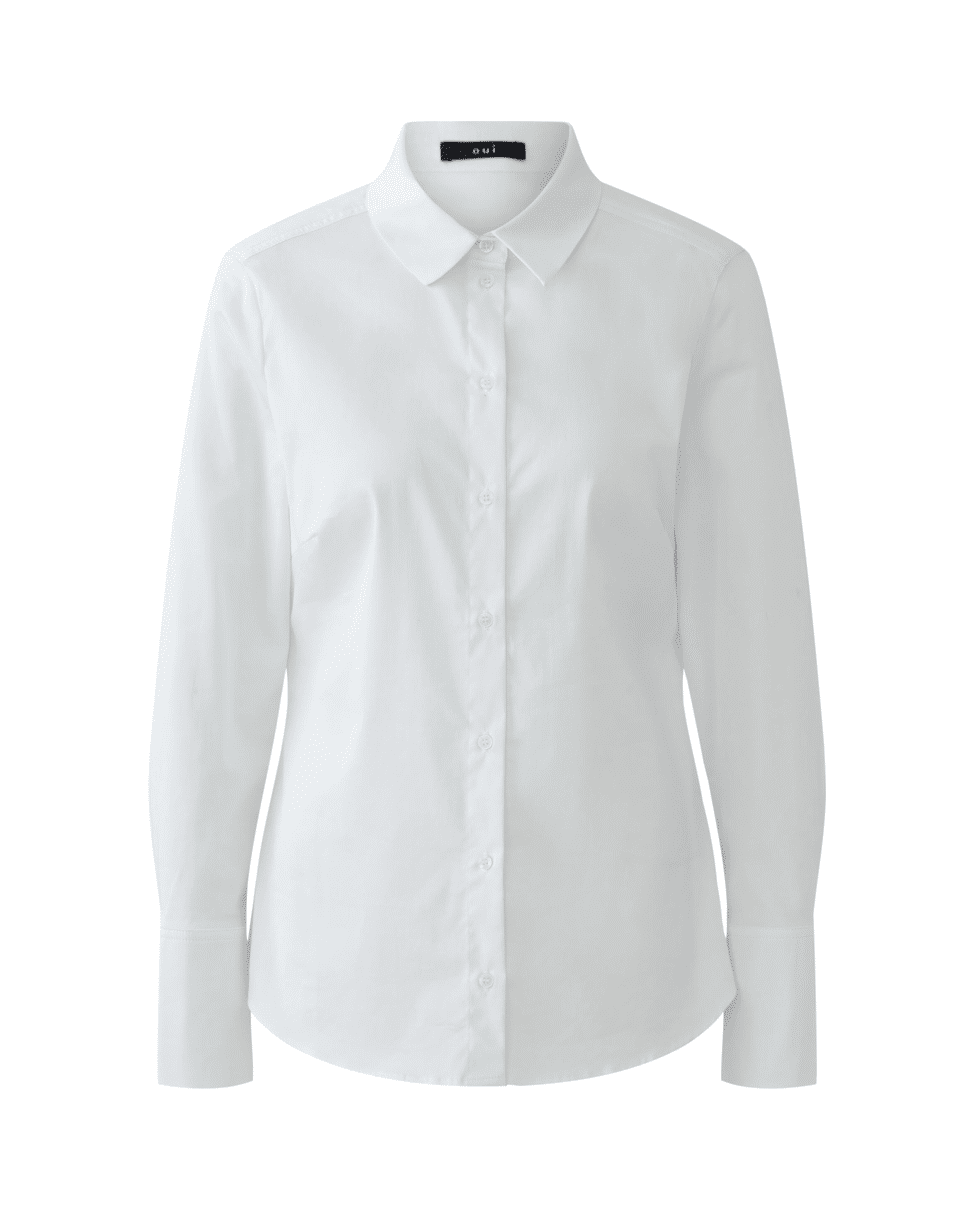 ANUYA - Witte damesblouse van Oui met katoen-mix, klassieke kraag en lange mouwen