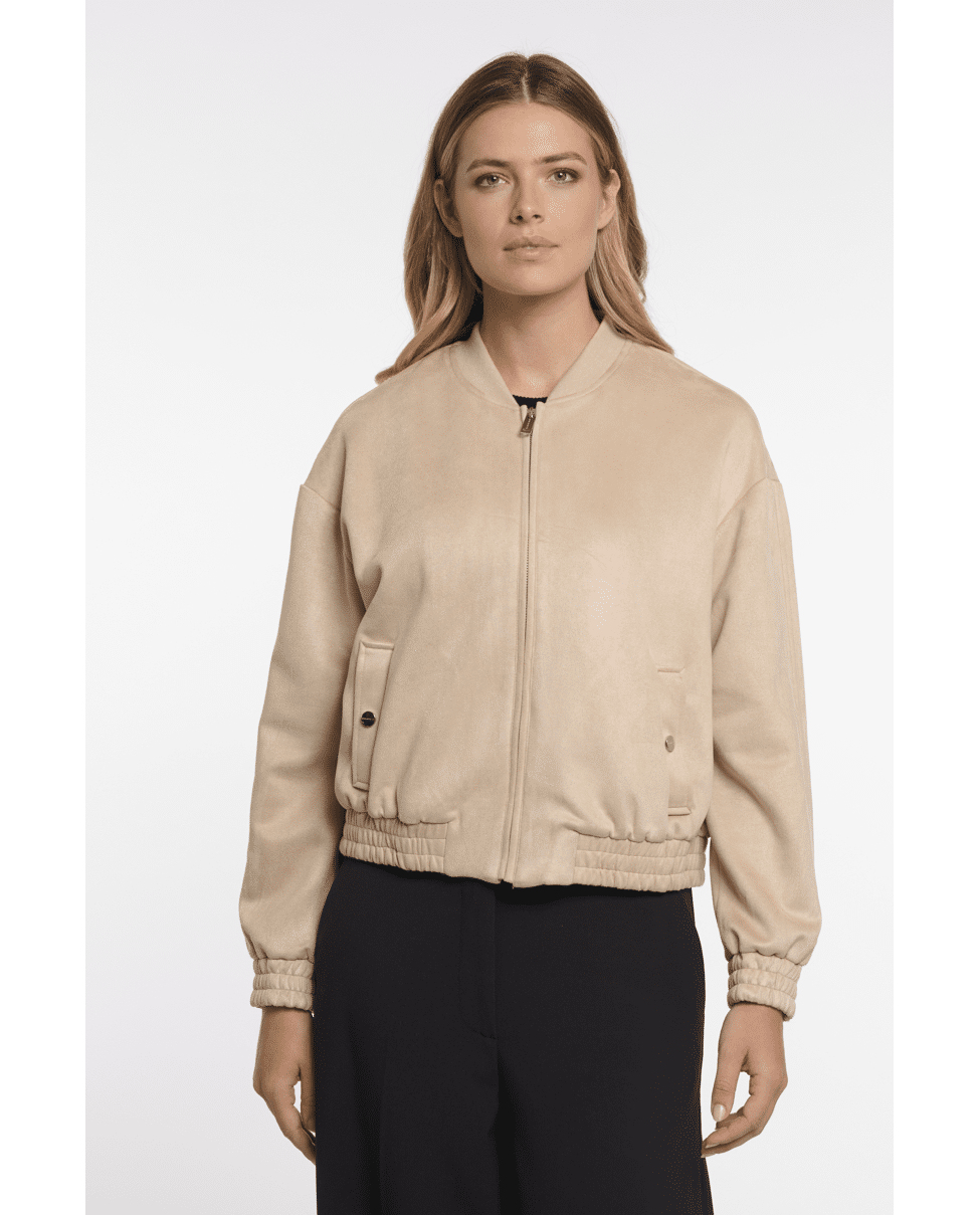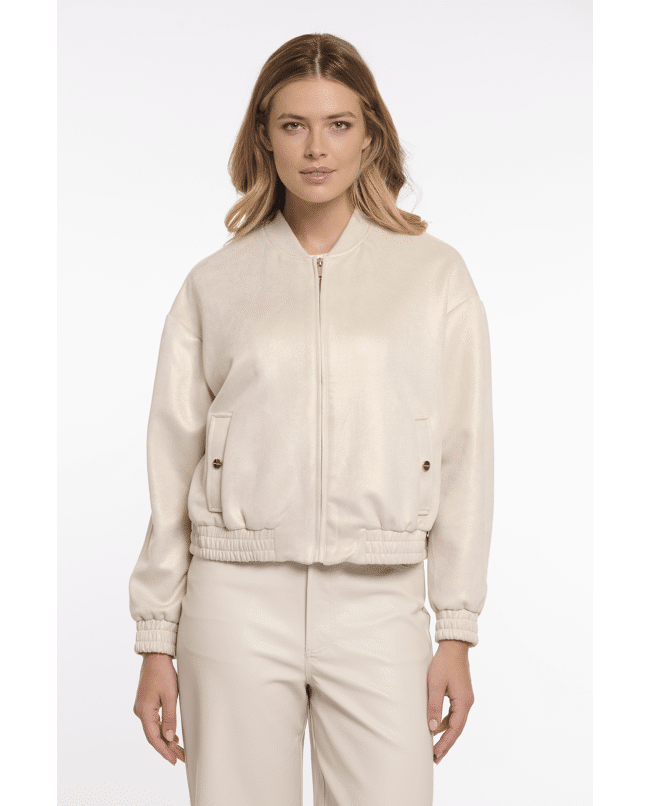 Deze moderne bomberjas in een zachte tint is een tijdloze aanvulling op je tussenjas-garderobe. Licht en comfortabel, ideaal voor lentedagen of frisse zomeravonden.