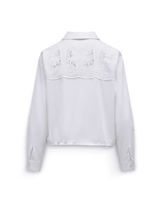 Deze witte blouse van Label Dot is een verfijnd item met een uitgesproken zomers karakter. De opengewerkte broderie anglaise aan de bovenkant geeft lucht en detail, terwijl het silhouet rustig en draagbaar blijft.