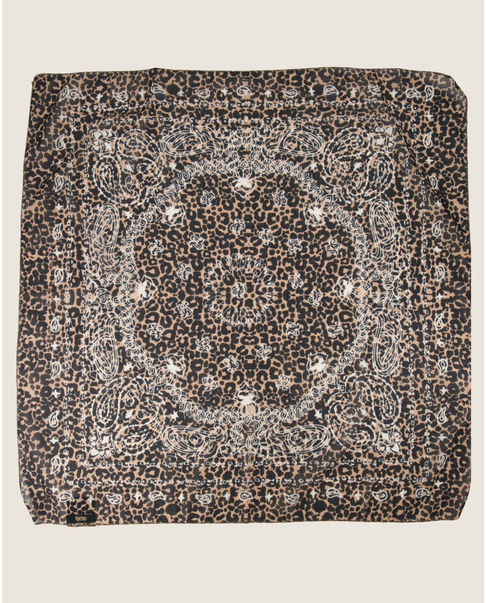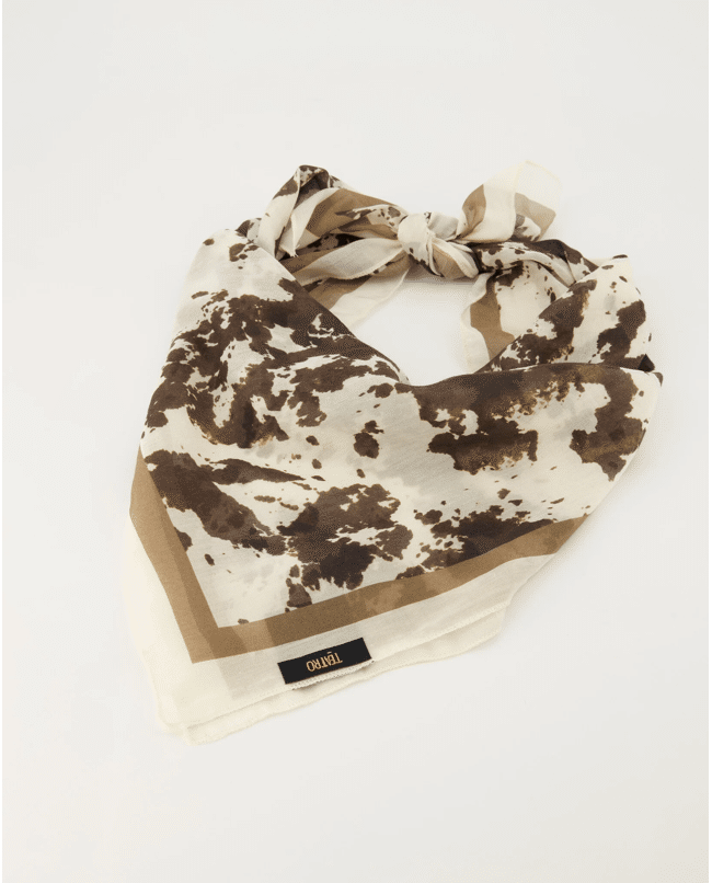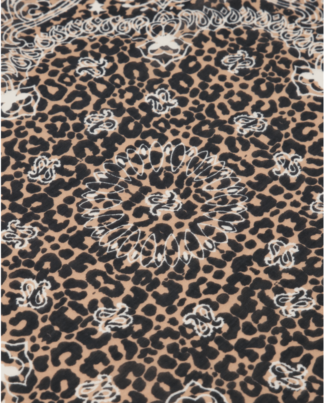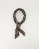 Ontworpen om elke look te versterken, biedt deze veelzijdige sjaal talloze draagmogelijkheden. Gewikkeld om de nek, verwerkt in een paardenstaart, geknoopt rond een knot, gedragen als bandana of vastgebonden aan een tas.