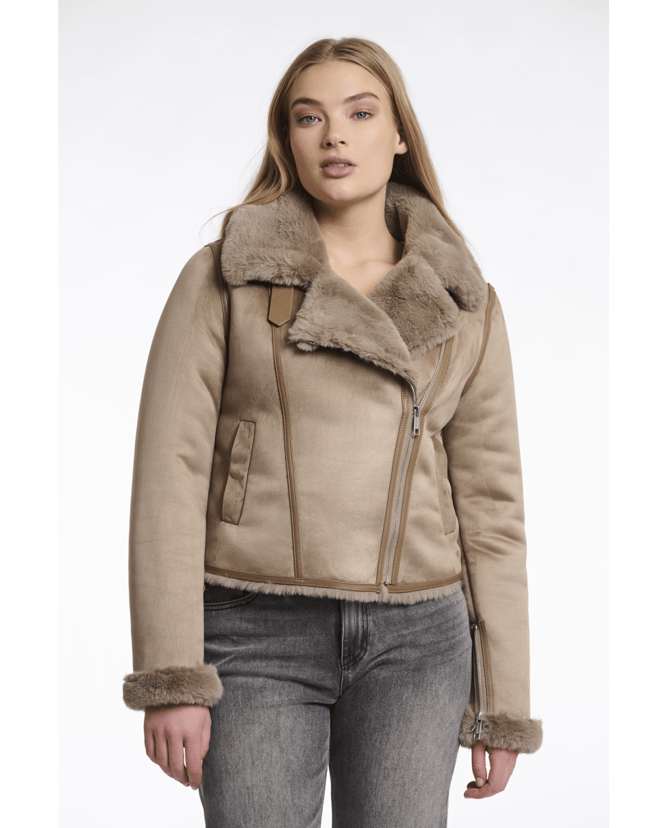 Bacia – Dames biker jack van Rino&Pelle met imitatiebont, ritssluiting en zakken