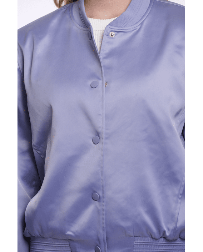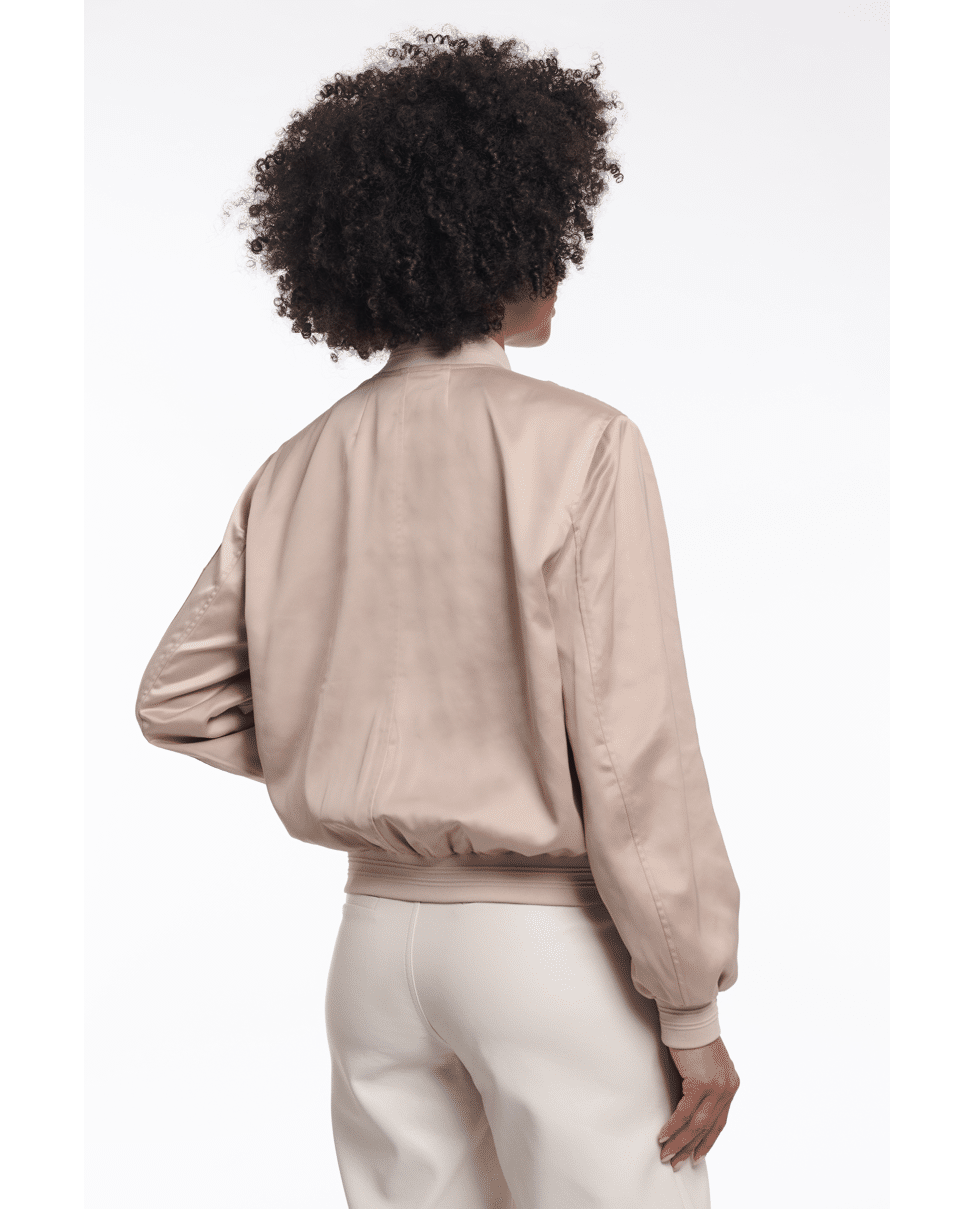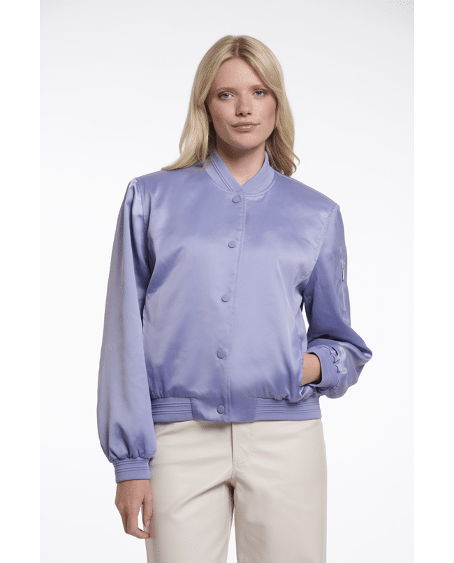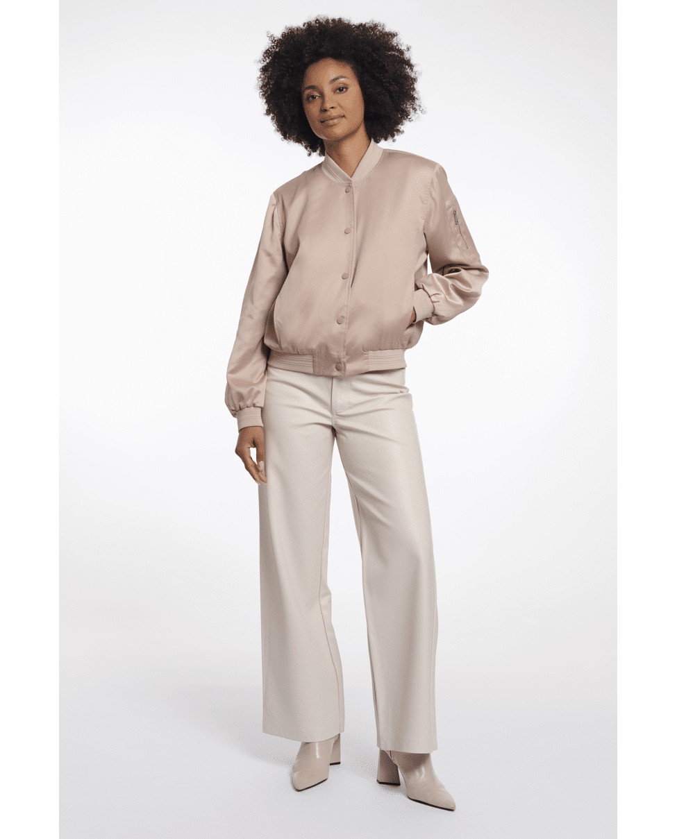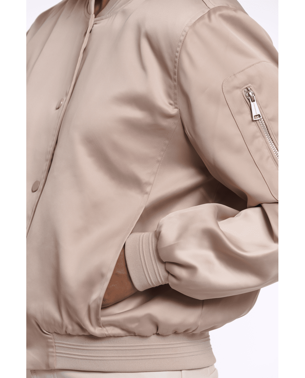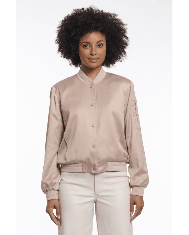 De satijnachtige finish en tonale drukknopen geven deze bomber een cleane, moderne uitstraling die makkelijk te stylen is.