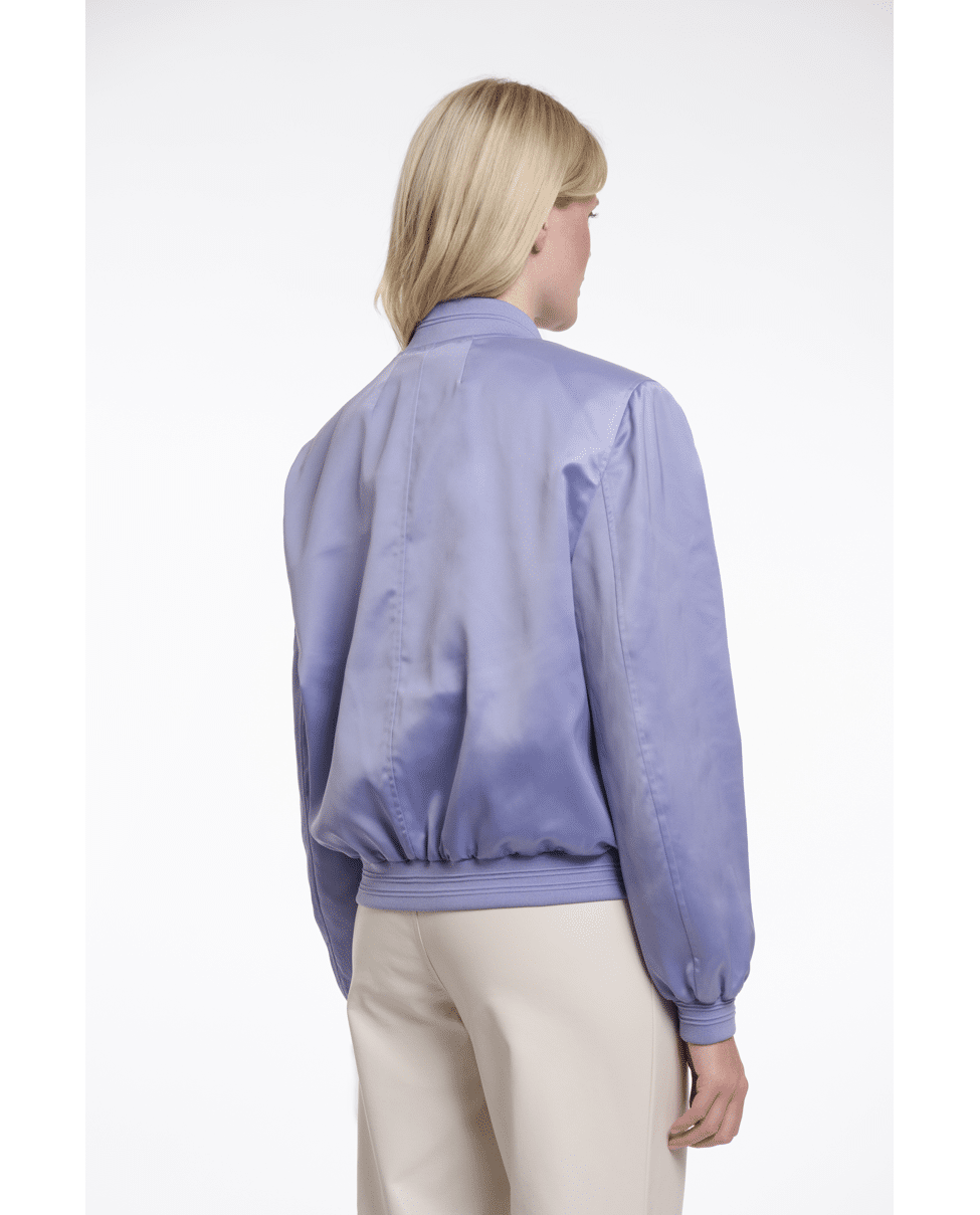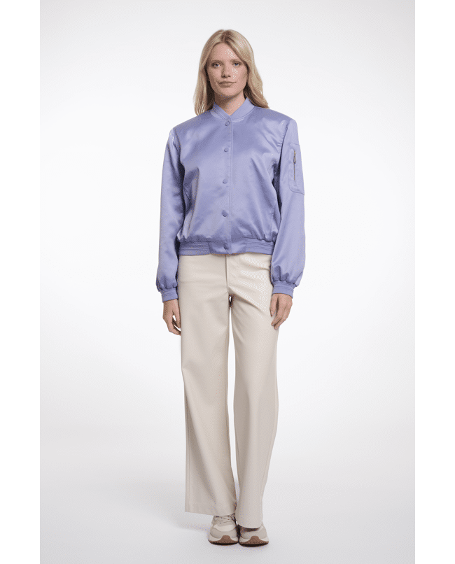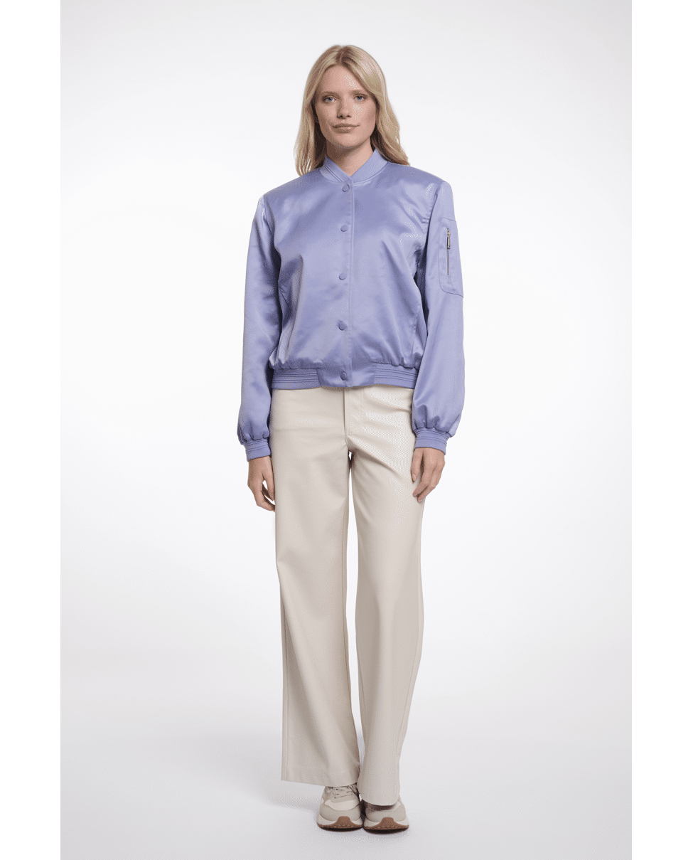 Deze glanzende bomber combineert comfort met een vrouwelijke twist. Lichtgewicht en subtiel sportief – ideaal voor frisse lentedagen of koele zomeravonden.