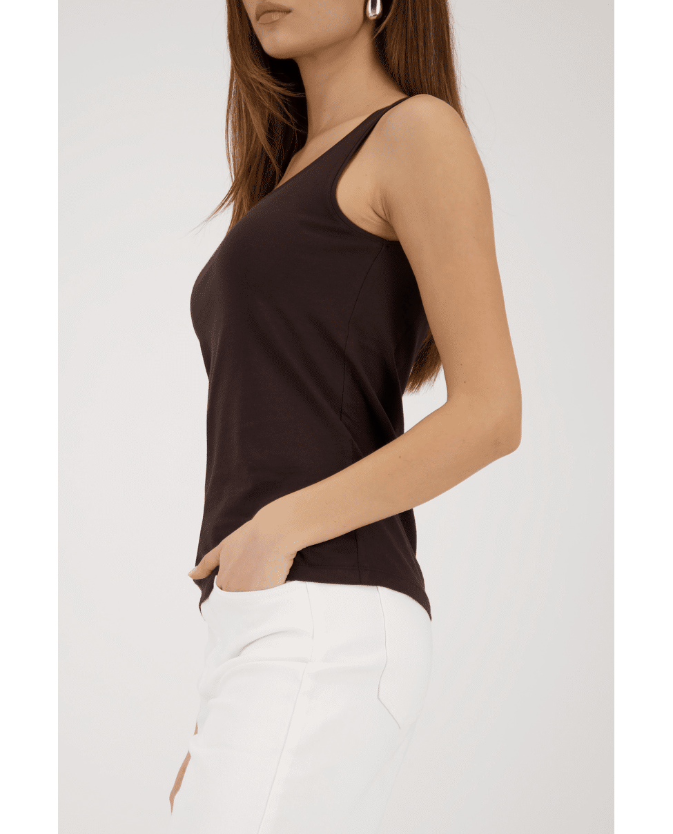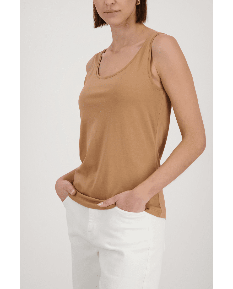 De aansluitende fit en zachte stretch maken dit topje ideaal onder een blouse, blazer of gewoon solo op een warme dag.