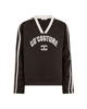 Sportief met een vrouwelijke edge. Deze V-hals sweater is gemaakt van 100% katoen en heeft een opvallend geborduurd logo op de borst. De contrasterende biezen geven ‘m een eigentijdse retrolook.