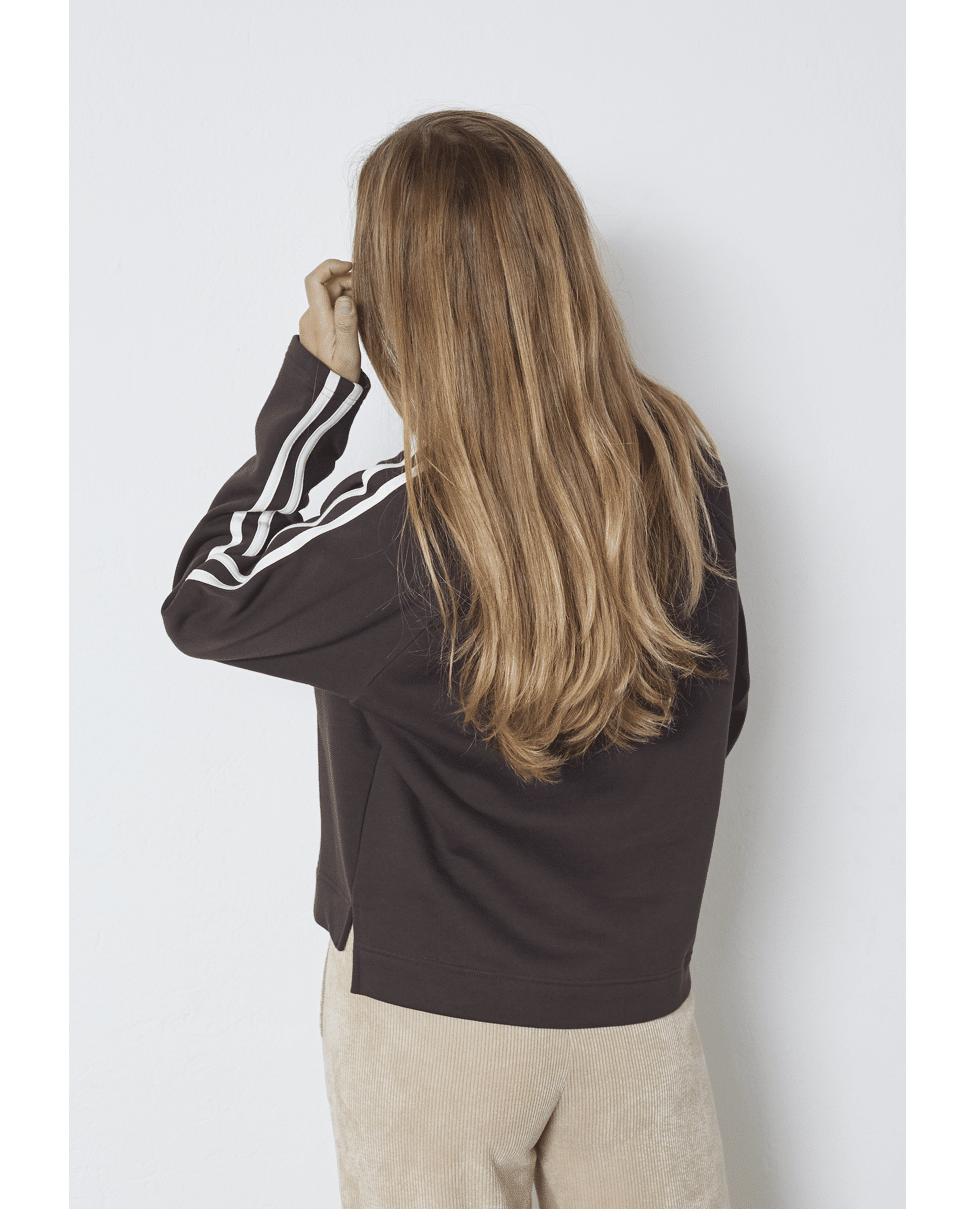 De combinatie van sportieve details met een cleane afwerking maakt deze trui perfect voor een casual-chique stijl.