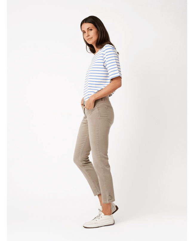 Deze jeans is een fijne afwisseling op klassiek blauw. De aangesloten pasvorm en lichte stretch zorgen voor een flatterende fit.
