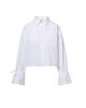 BEL - Dames gestreepte blouse van Beaumont met strikjes op de lange mouwen, borstzak klassieke kraag en knoopsluiting
