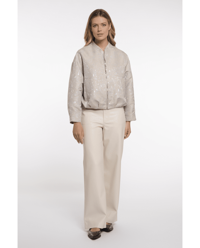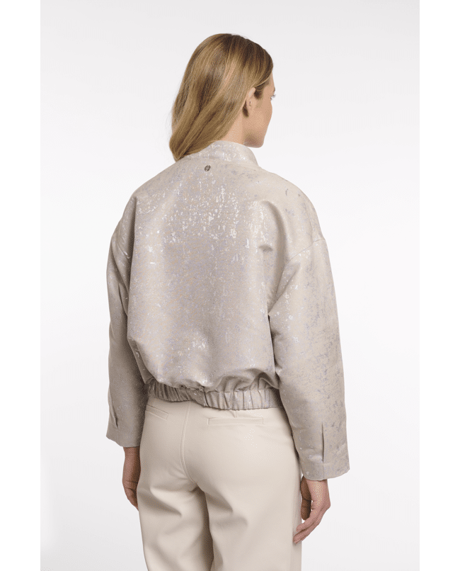 De metallic finish geeft een speelse twist aan de klassieke bomberstijl. Mooi in contrast met basic stukken of ton-sur-ton tinten.