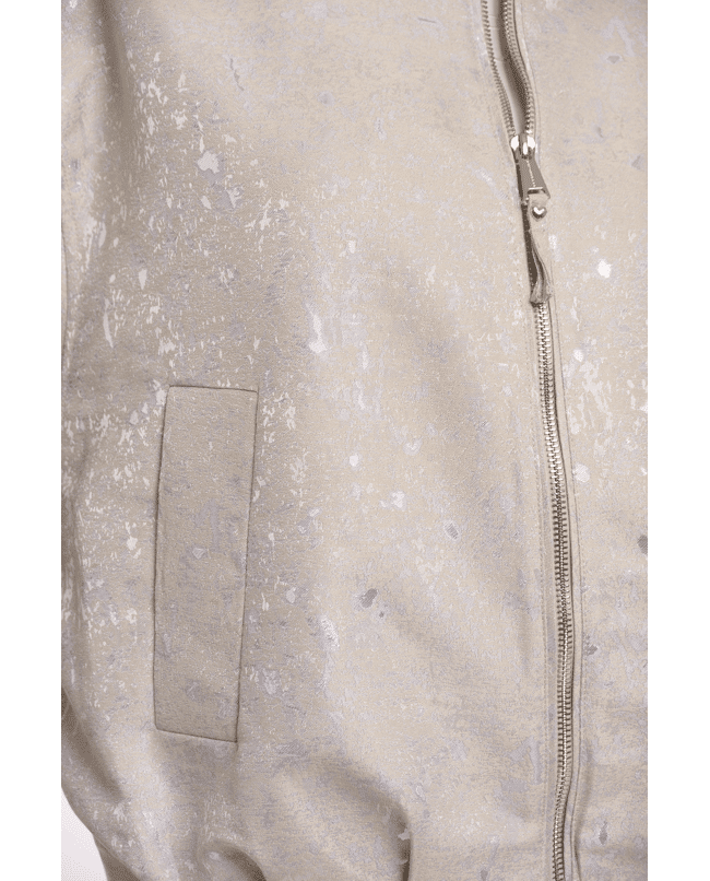 Dit korte bomberjack met zilverkleurige print voegt een vleugje glamour toe aan je dagelijkse look. De minimalistische vorm en glanzende finish maken het de perfecte eye-catcher voor voorjaar of zomeravonden.