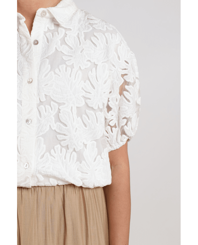 Berit Blouse Embroidery – Blouse van Nukus met opengewerkte bladeren