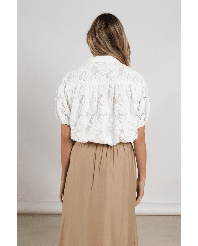 De Berit Blouse Embroidery van NUKUS is een luchtige off white dames blouse met verfijnde bloemenborduring. Deze licht doorschijnende blouse is perfect voor het voorjaar en geeft je outfit een frisse, vrouwelijke uitstraling.