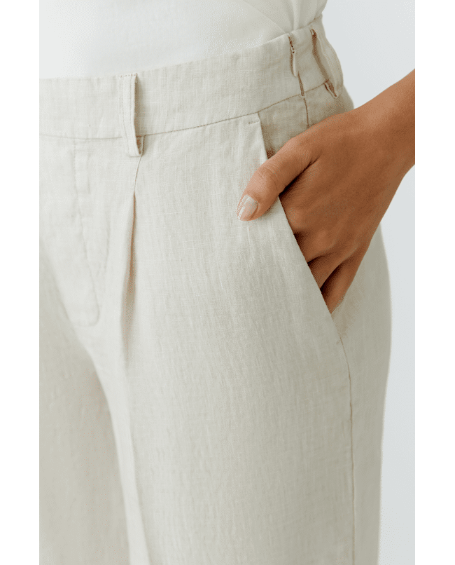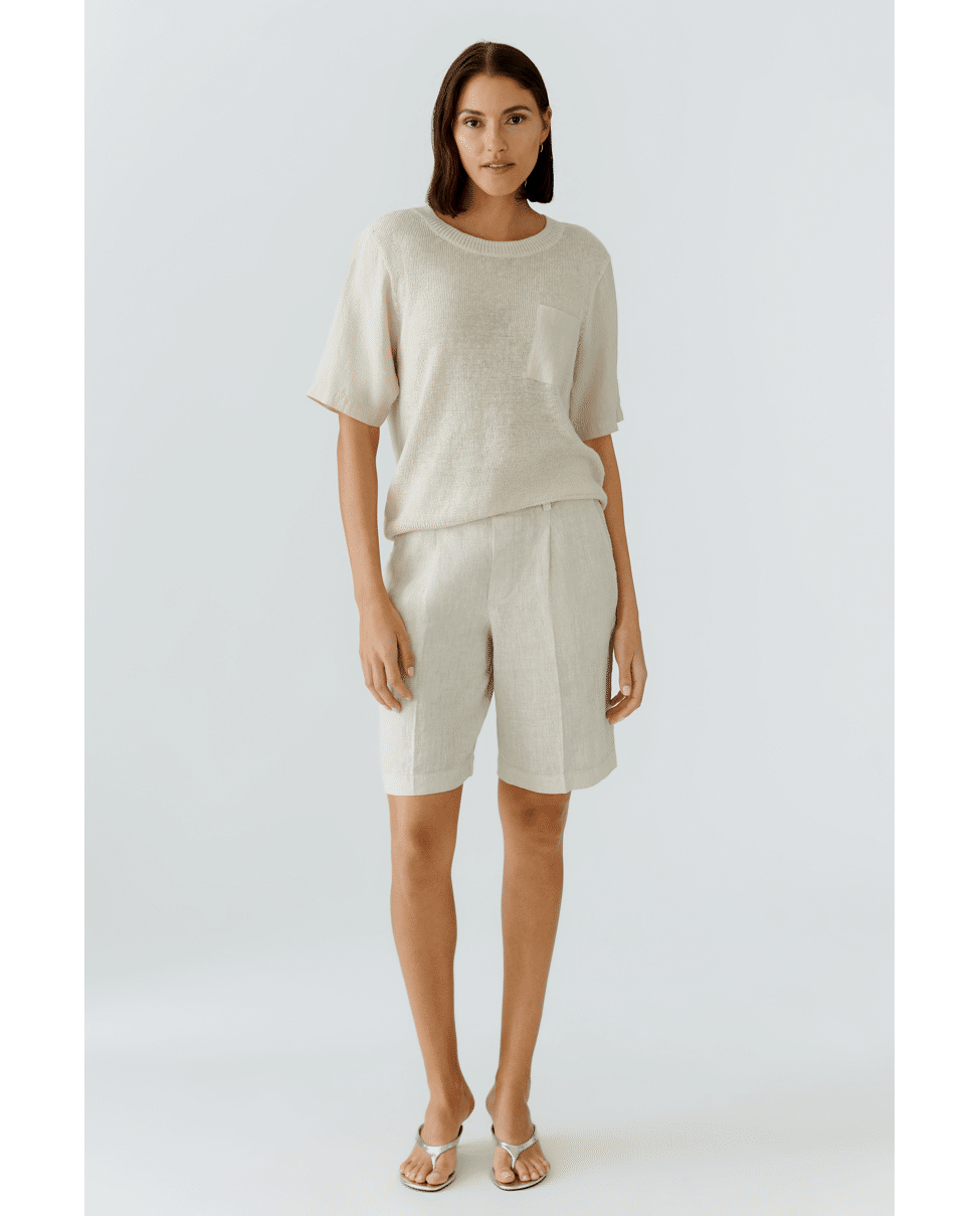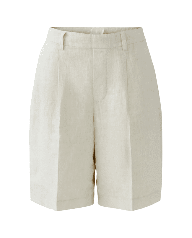 Een luchtige linnen bermuda met een tijdloze, zomerse uitstraling. De natuurlijke structuur van het linnen en de zachte beige tint maken deze short ideaal voor warme dagen.