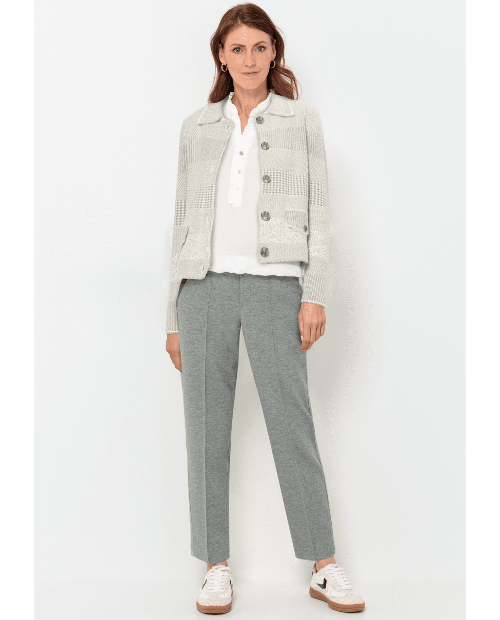 Deze gebreide jas combineert structuur en comfort. Ideaal voor frisse dagen waarop je net dat extra laagje nodig hebt.