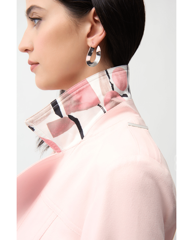 Dit getailleerde jasje van imitatiesuède met folie heeft een ritssluiting aan de voorkant, ritsen op de zakken en drukknopen aan de mouwen. Decoratieve gespen aan de voorkant zorgen voor een stijlvolle touch, terwijl de bedrukte satijnen voering de luxe uitstraling versterkt.