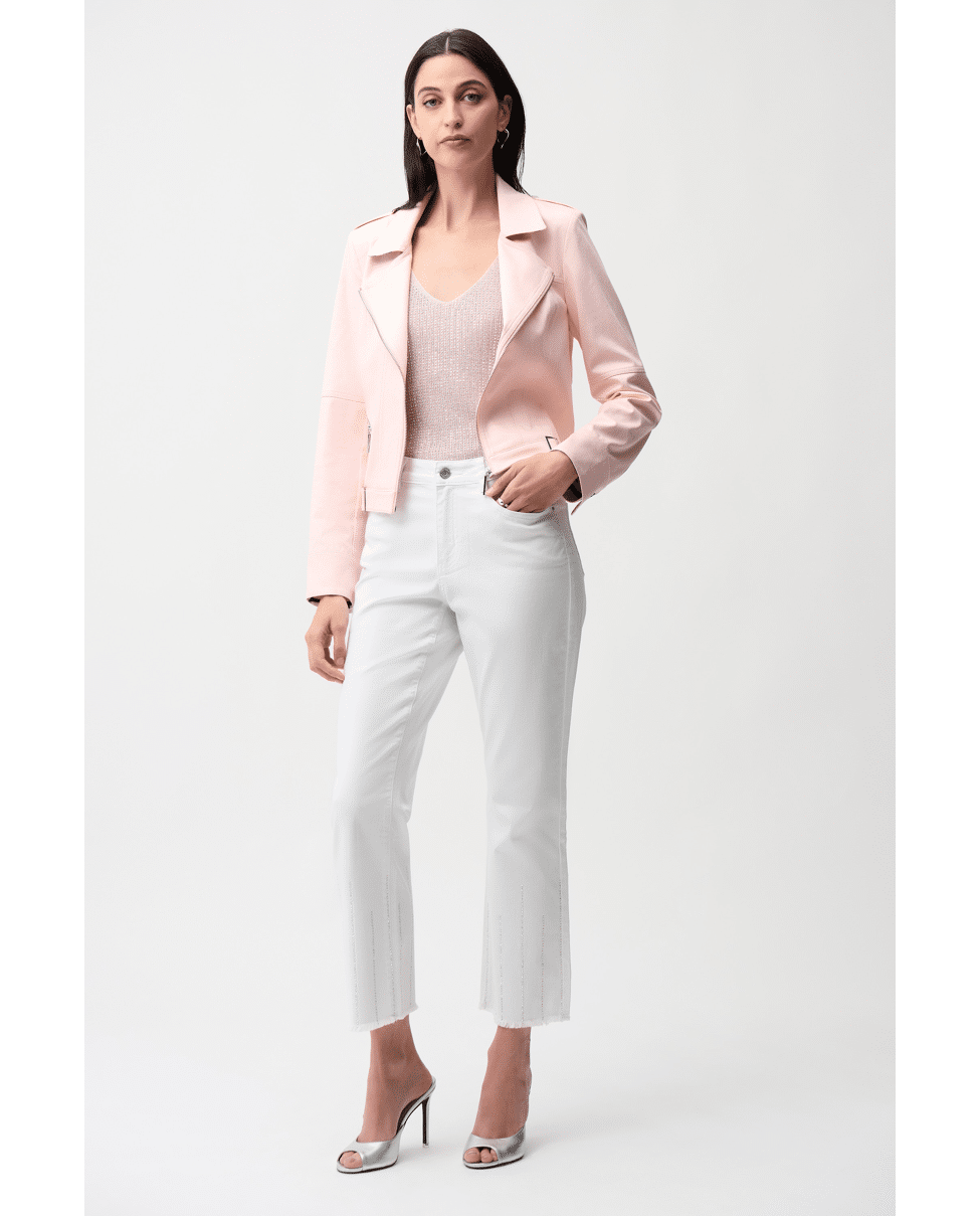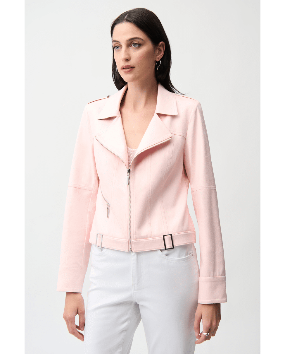 Dames bikerjack van Joseph Ribkoff met decoratieve gespen, imitatiesuède, revers kraag en ritssluiting