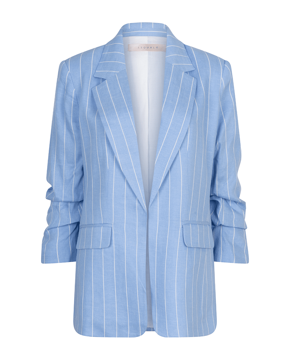 Dames blazer van Esqualo met krijtstreep, opgeplooide mouwen, zonder sluiting en 2 klepzakken
