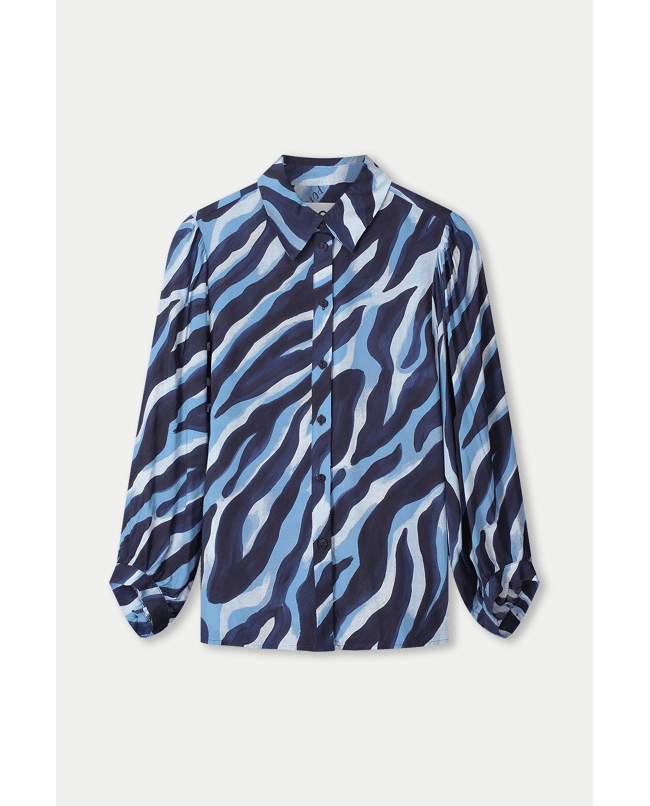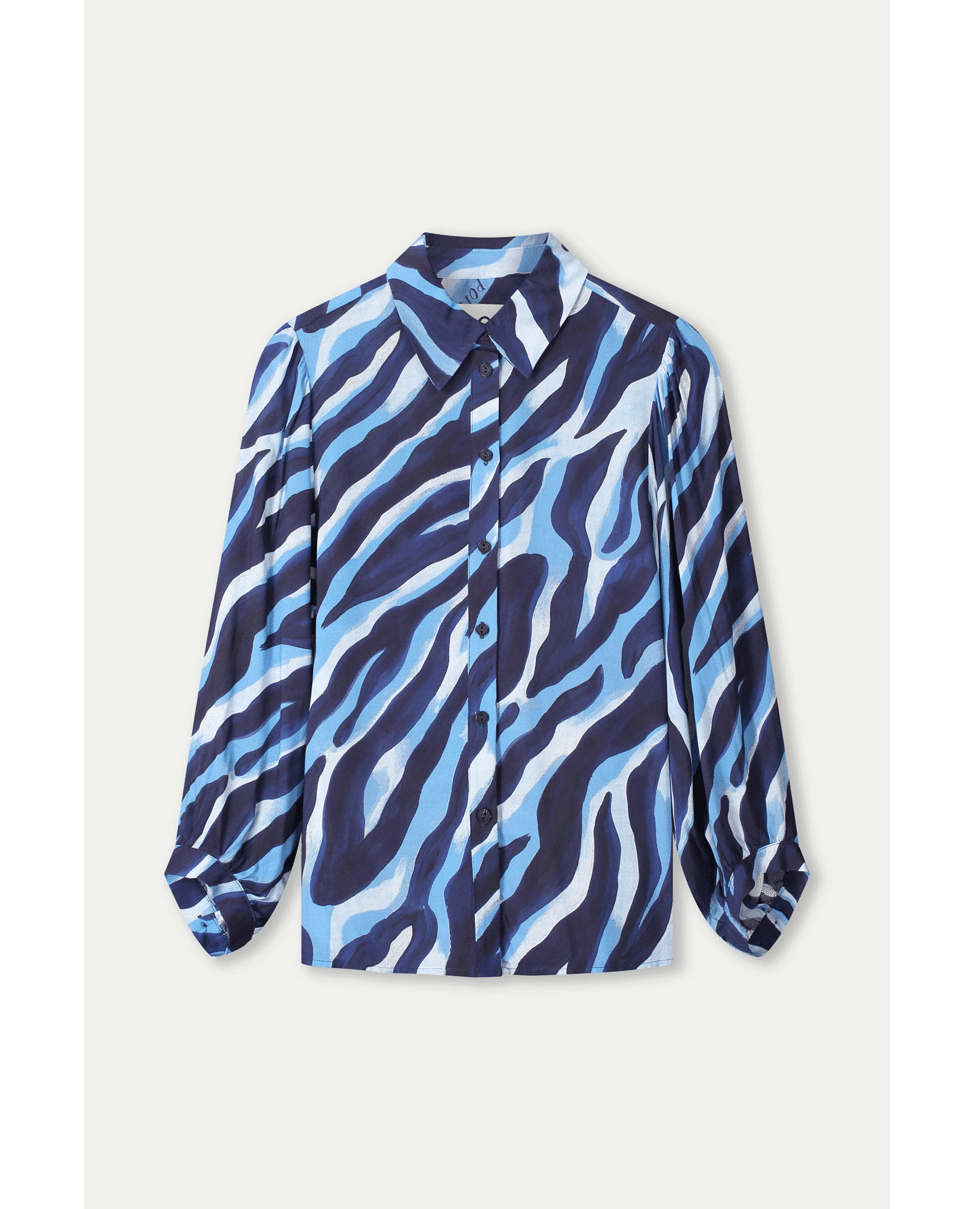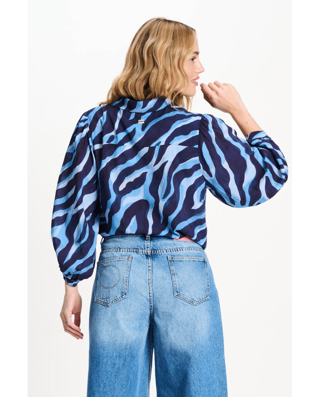 BLOUSE - Animal Blue van POM Amsterdam met zebra print