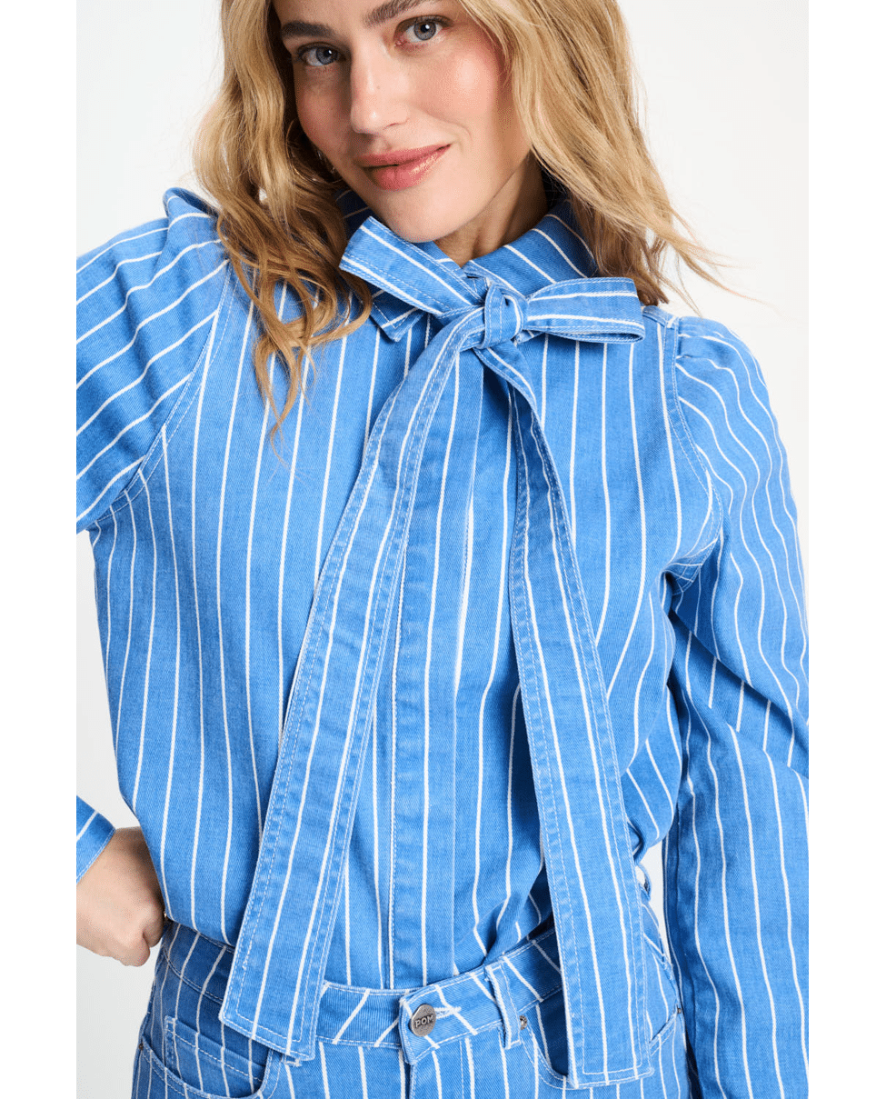 De klassieke streep en speelse strik maken dit een tijdloos item met karakter. Ideaal voor zowel casual als zakelijke looks.