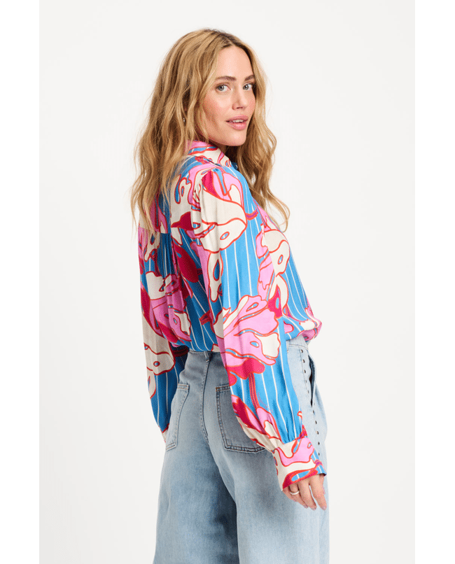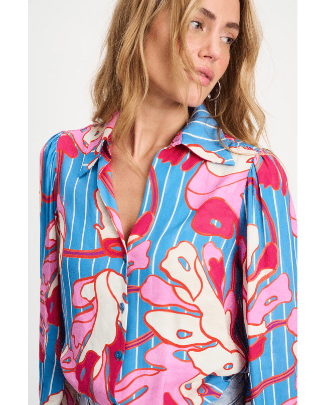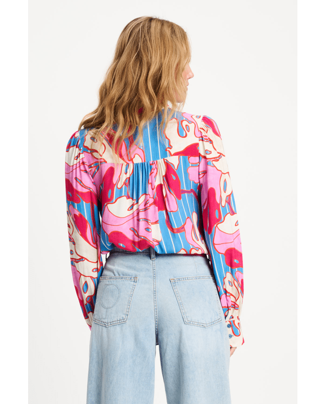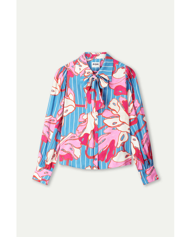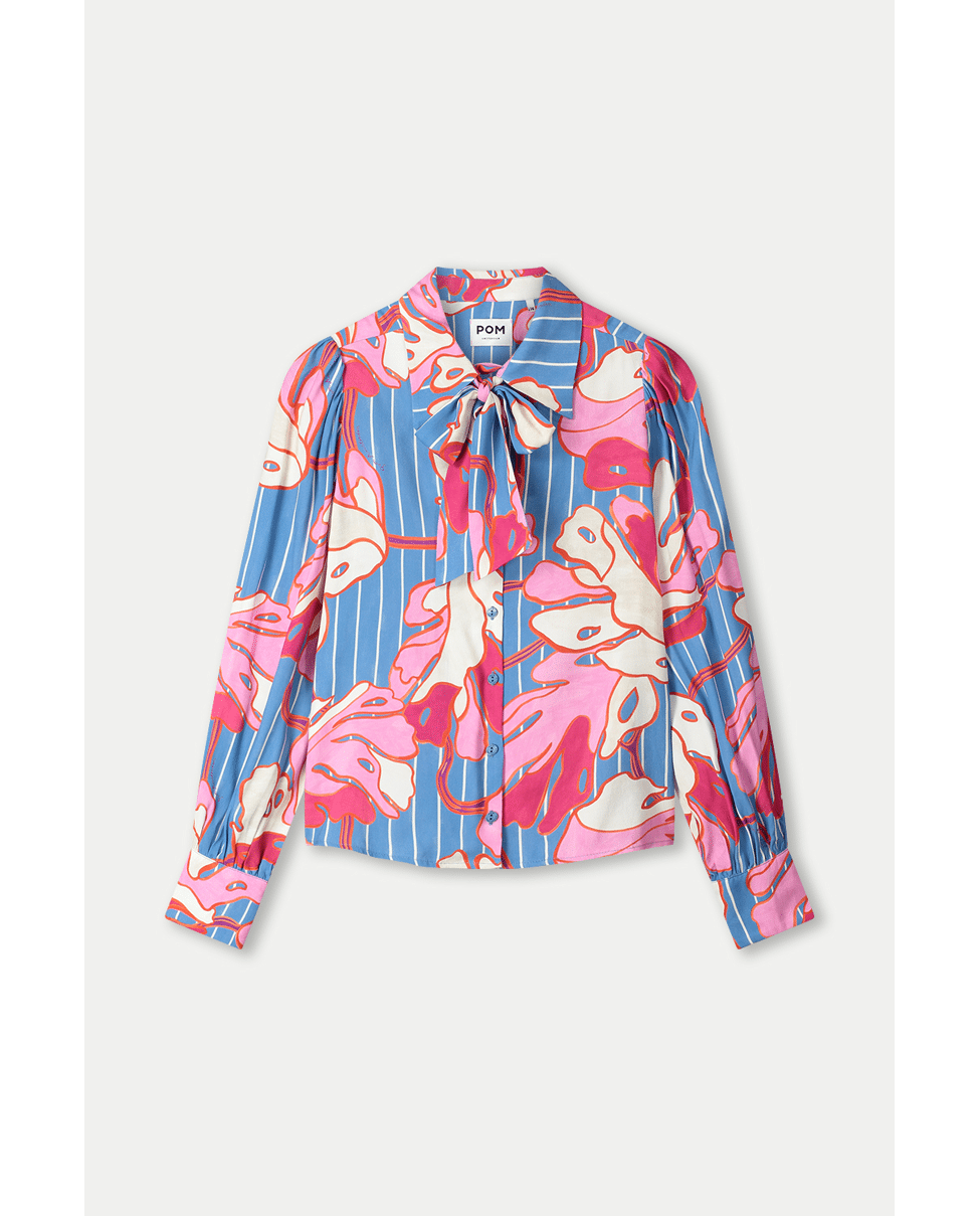 BLOUSE - Urban Flora Stripe van POM Amsterdam met strikkraag