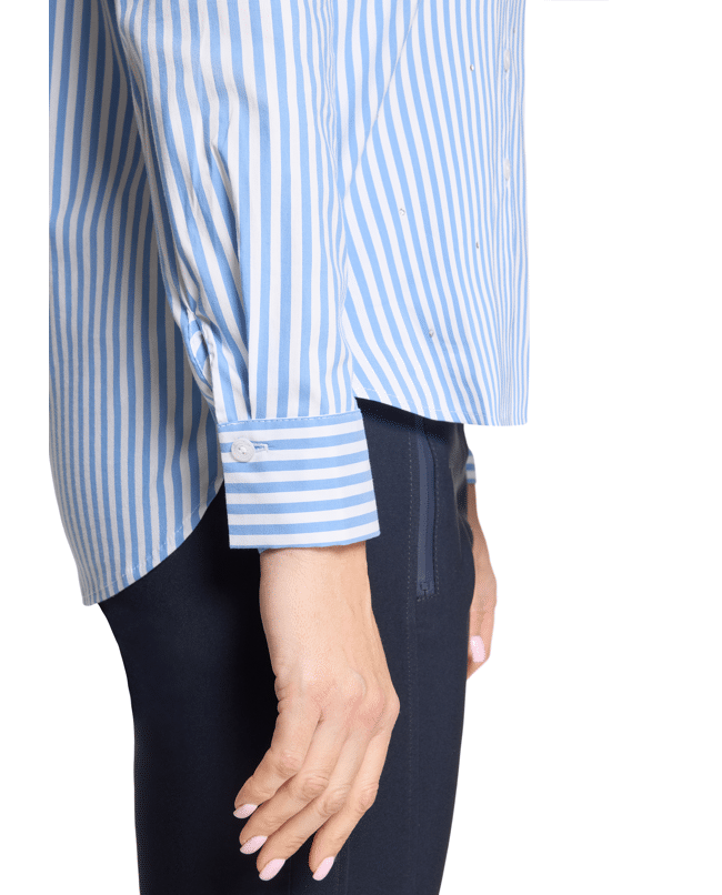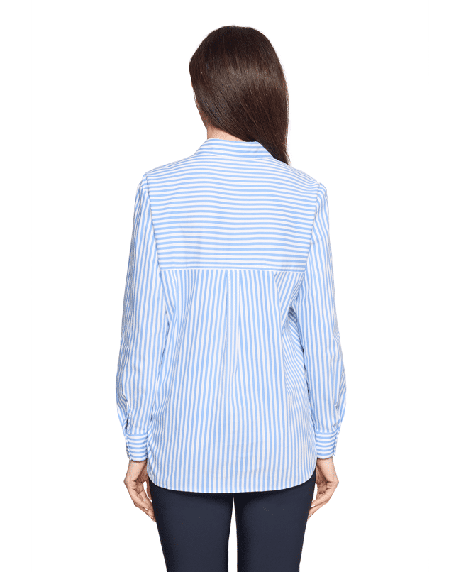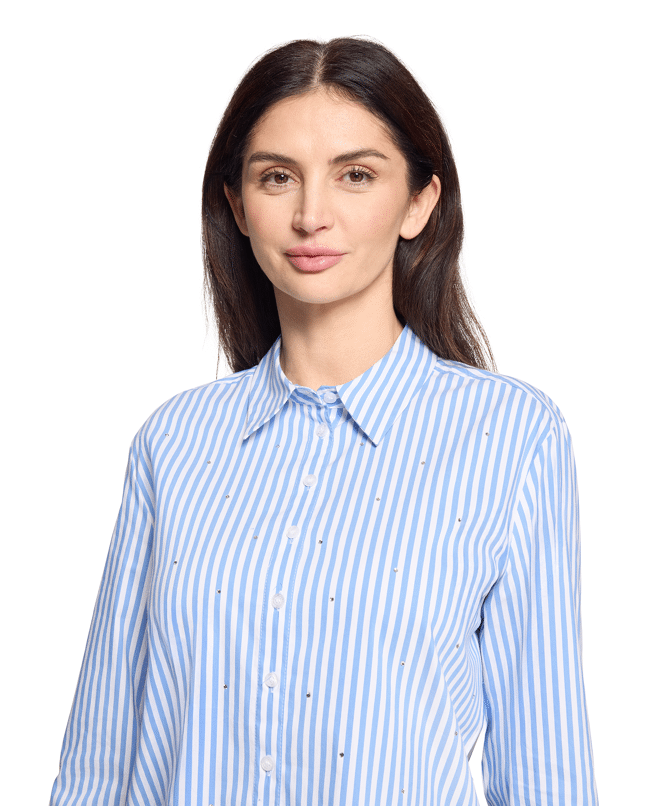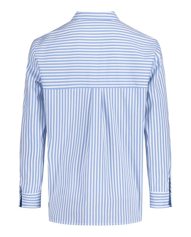De klassieke strepen krijgen een speelse twist door het langere achterpand. Draag ‘m los of ingestopt, net wat jij fijn vindt.