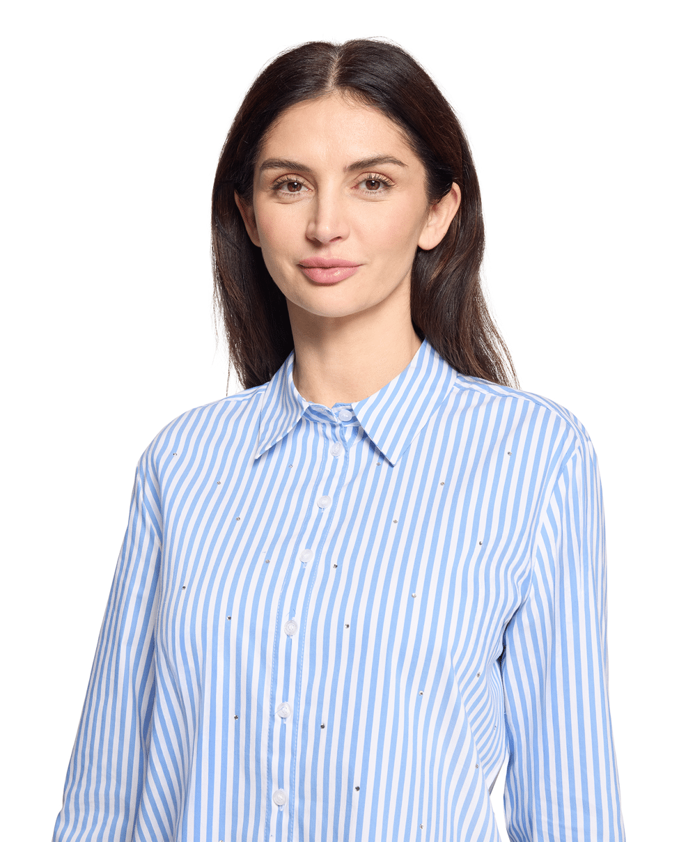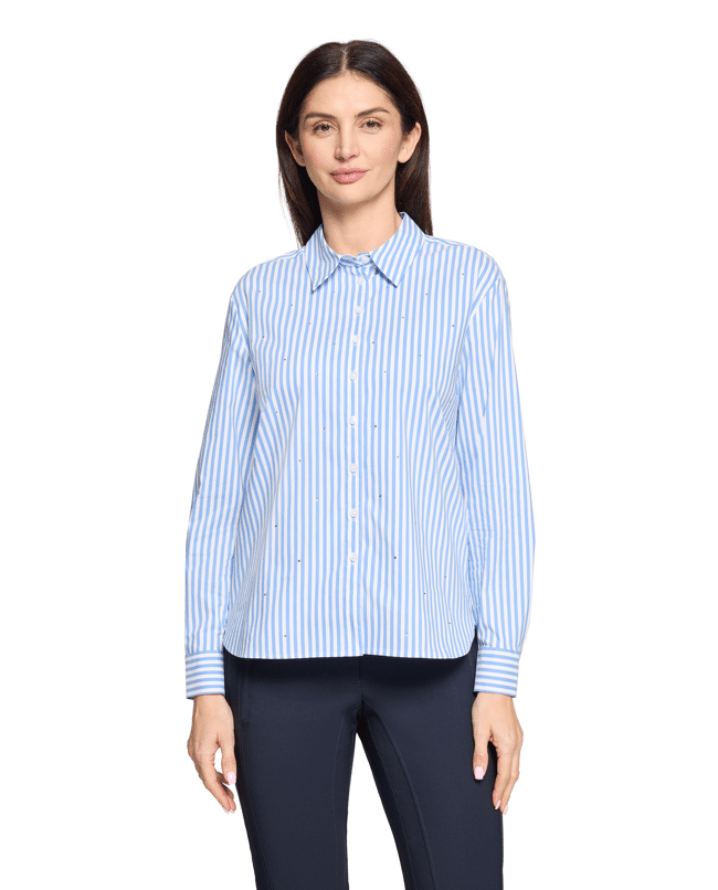 Dames blouse van Betty Barclay met verticale strepen, knoopsluiting, langer achterpand en lange mouwen