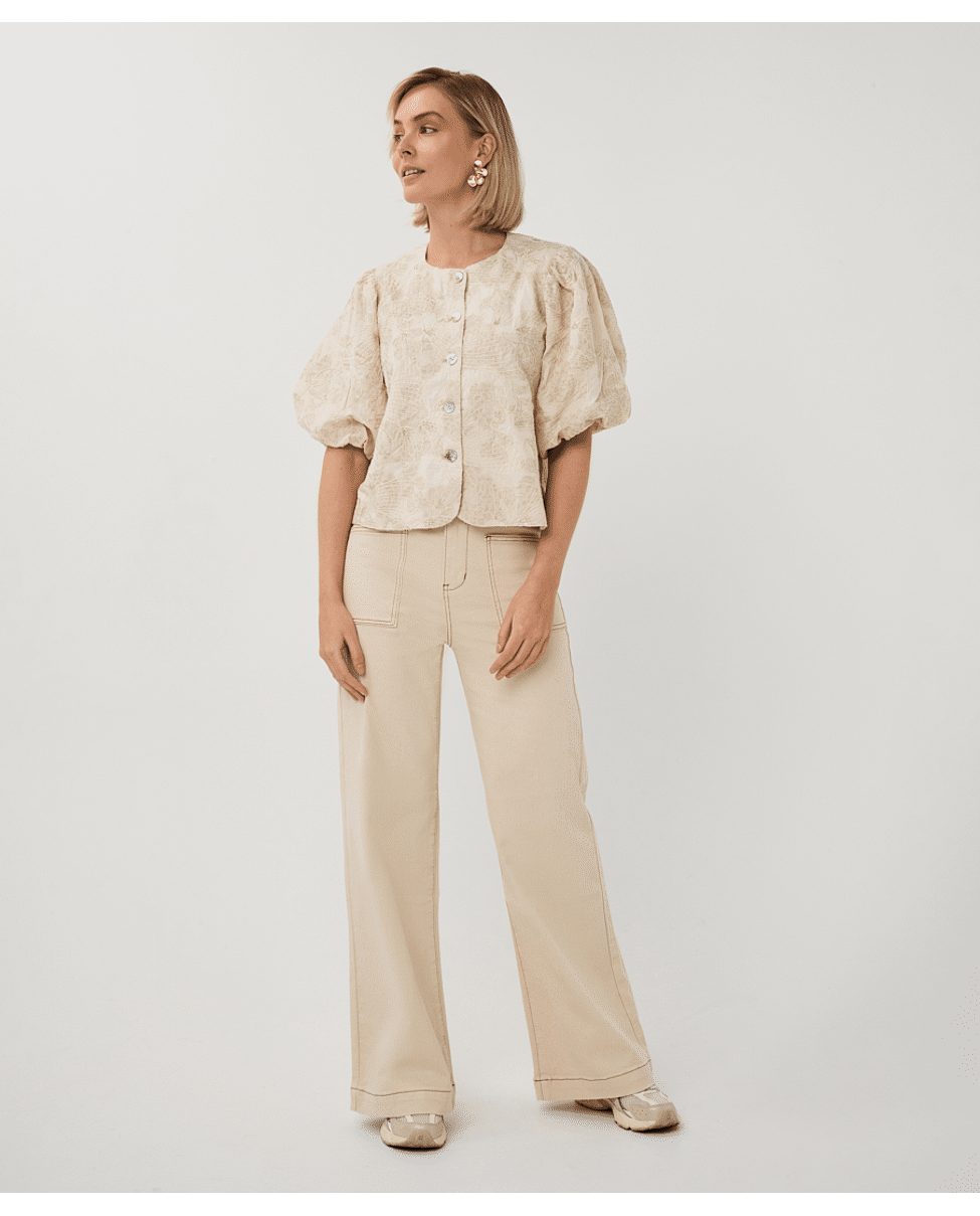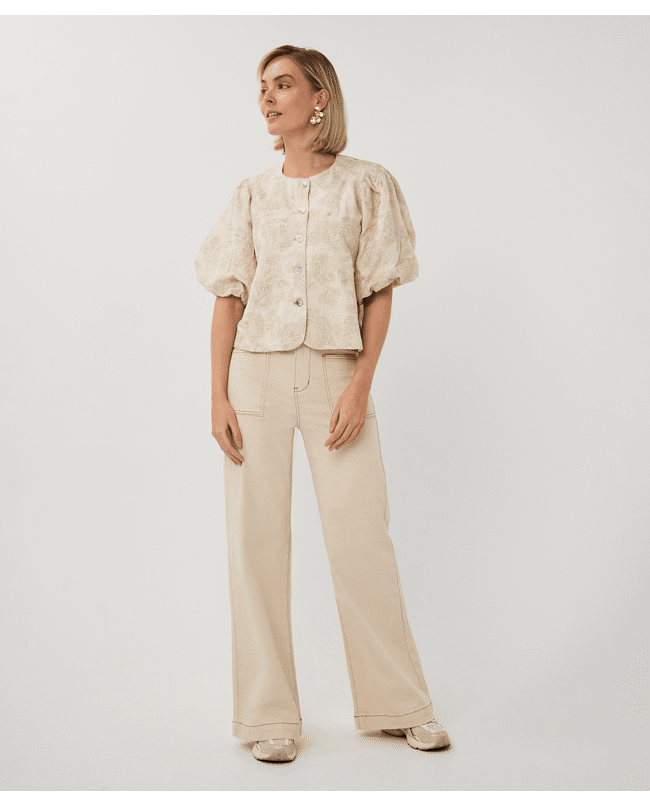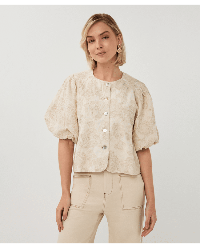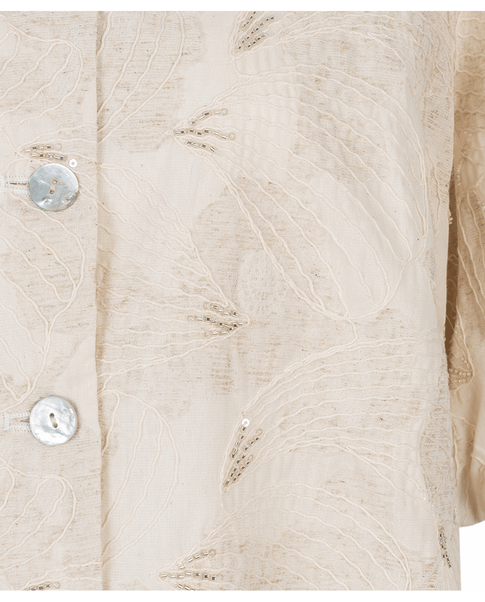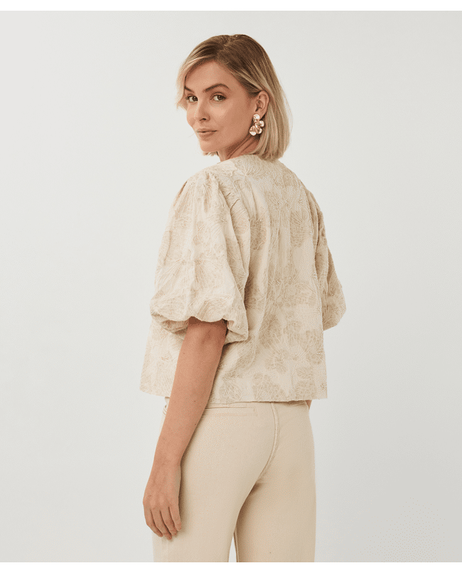Lichte blouse met ballonmouwen en verfijnde 3D shell-structuur. De mix van katoen, linnen en viscose zorgt voor een natuurlijke feel met een elegante twist – perfect voor een frisse voorjaarslook.