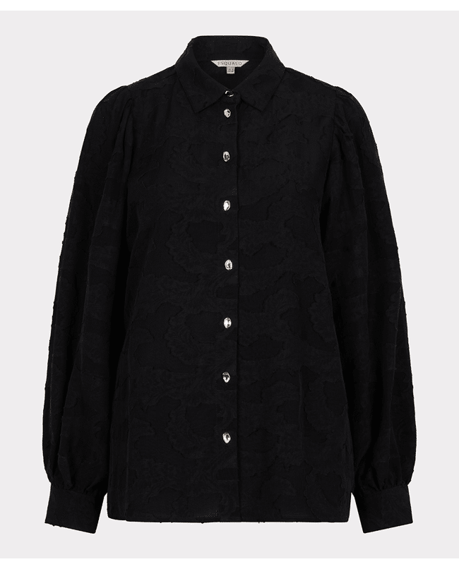 Een luchtige blouse met verfijnd bloemenjacquard. Deze zwarte top combineert moeiteloos elegantie met een natuurlijke uitstraling.