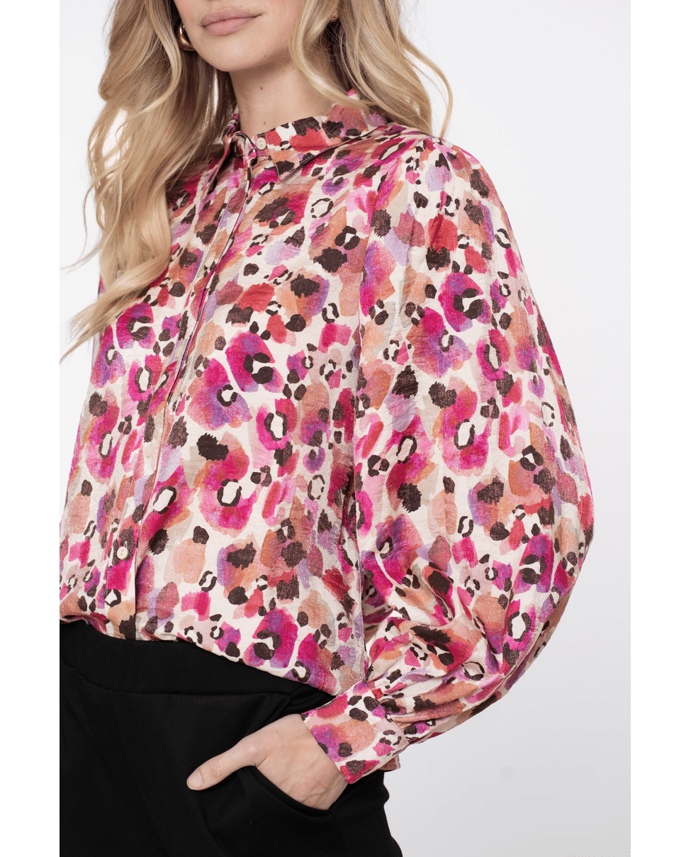 Een luchtige blouse met een speelse animalprint. De soepele viscose stof maakt dit item perfect voor zowel werk als vrije tijd.