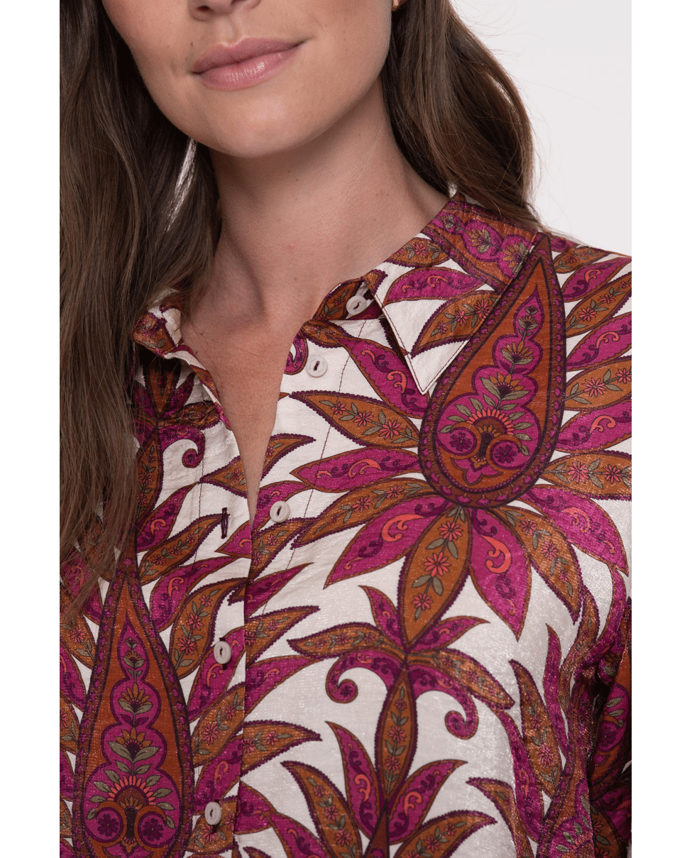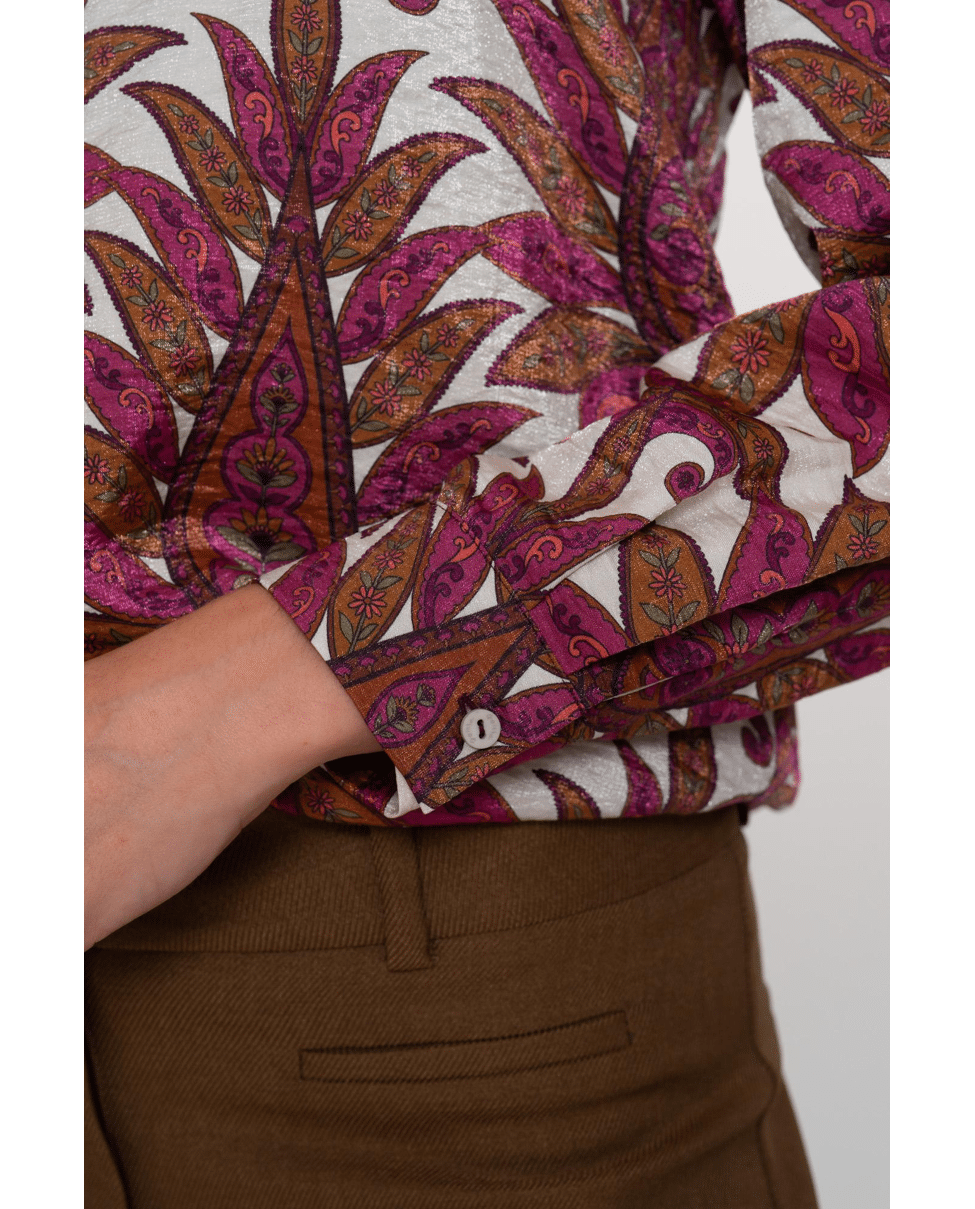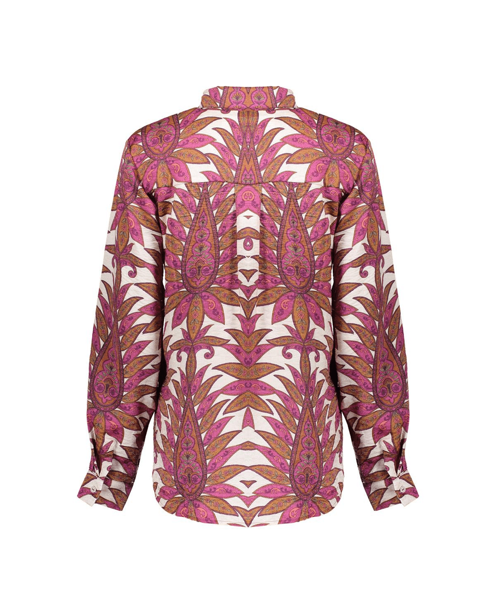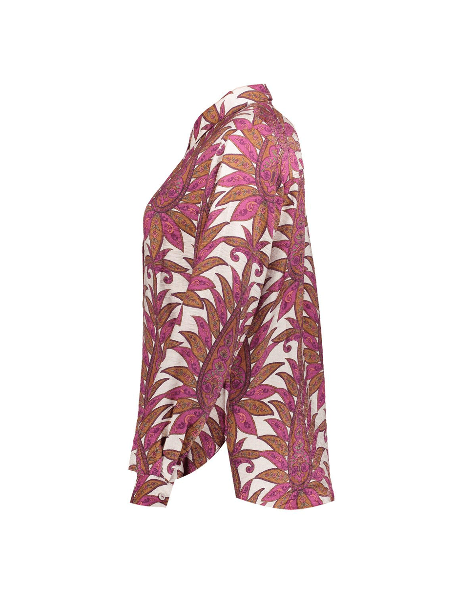 De levendige roze print op off-white ondergrond maakt deze blouse een echte blikvanger. Stijlvol met een pantalon of casual met jeans.
