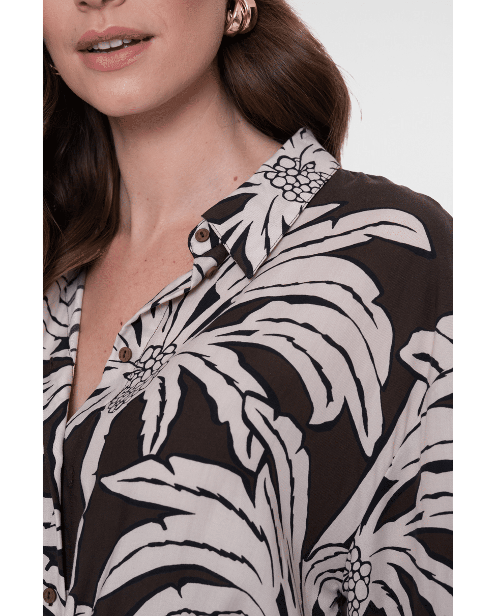 Deze losvallende blouse met tropische print is een zomerse essential. Ideaal voor stranddagen, citytrips of een relaxte avond op het terras.