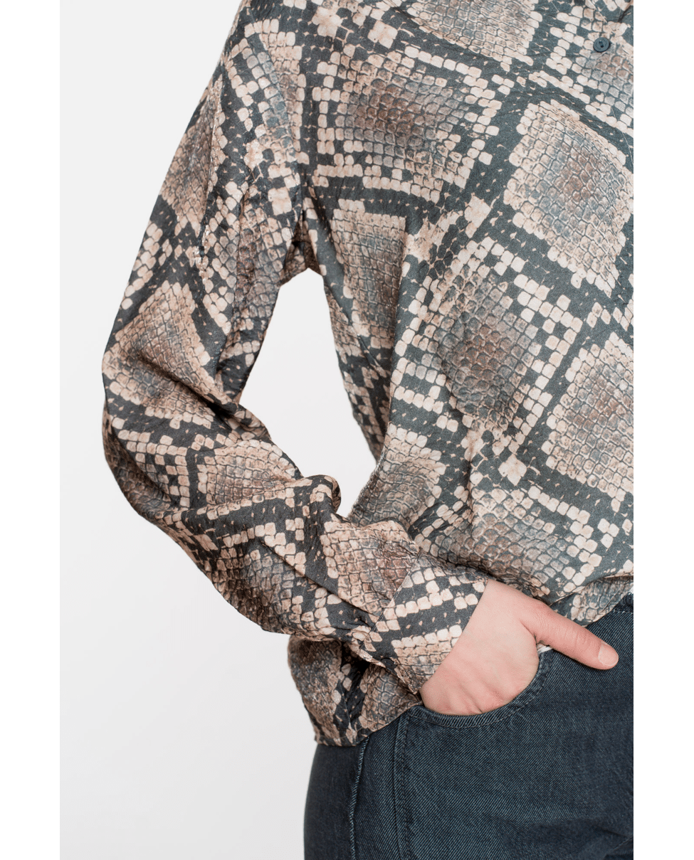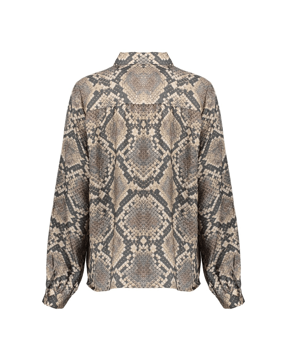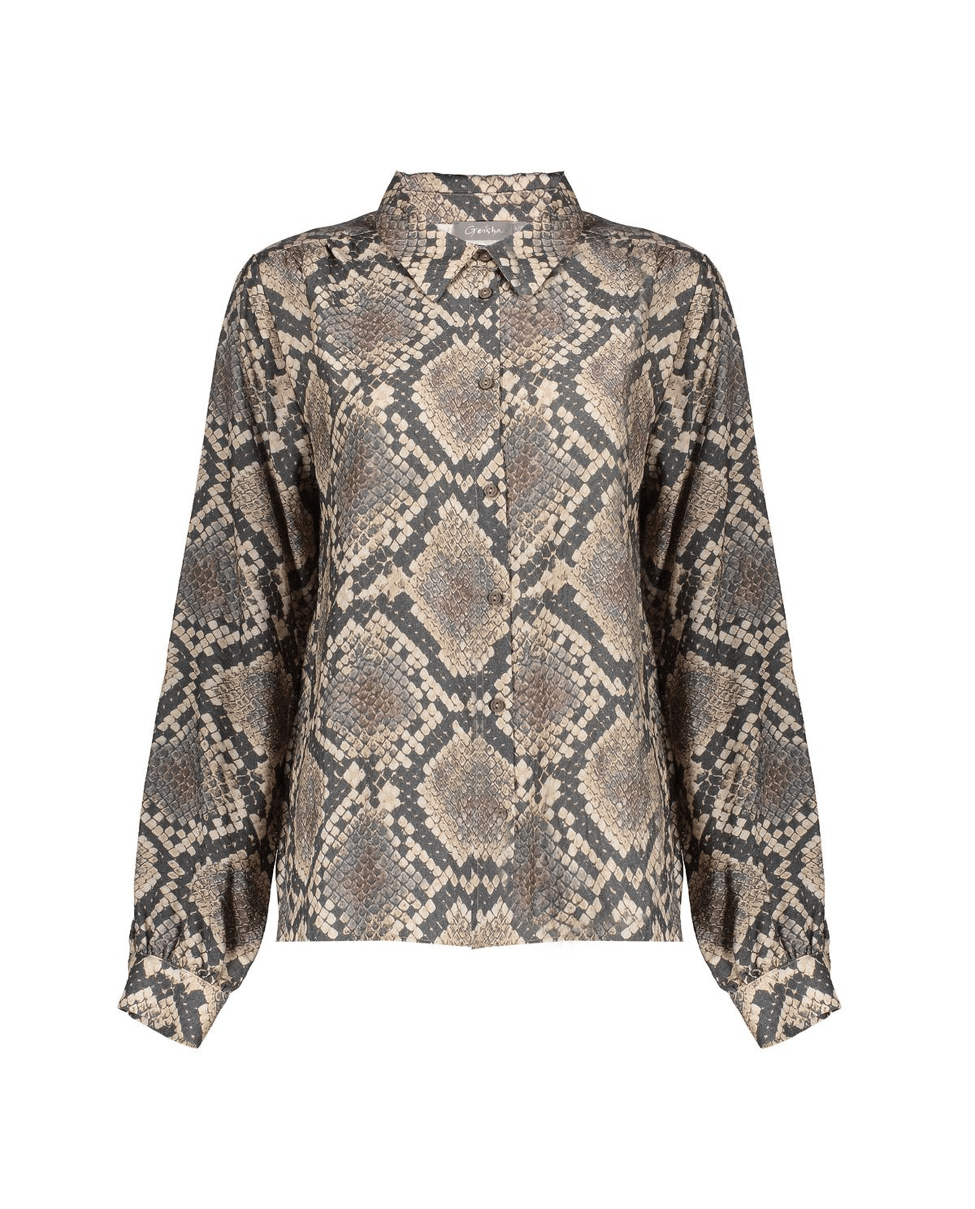 Deze blouse met subtiele slangenprint brengt een stoere twist in je wintergarderobe. De luchtige stof en klassieke kraag maken het een veelzijdig item voor zowel werk als avond.