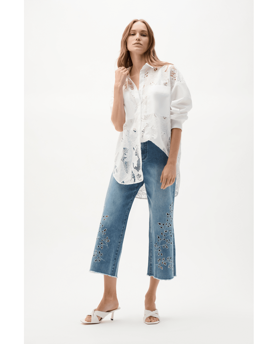 Deze luchtige blouse van katoen en kant geeft elke outfit een elegante touch. Met haar doorkijkborduursel, borstzakken en klassieke kraag is ze perfect voor zowel een zakelijke als casual look.