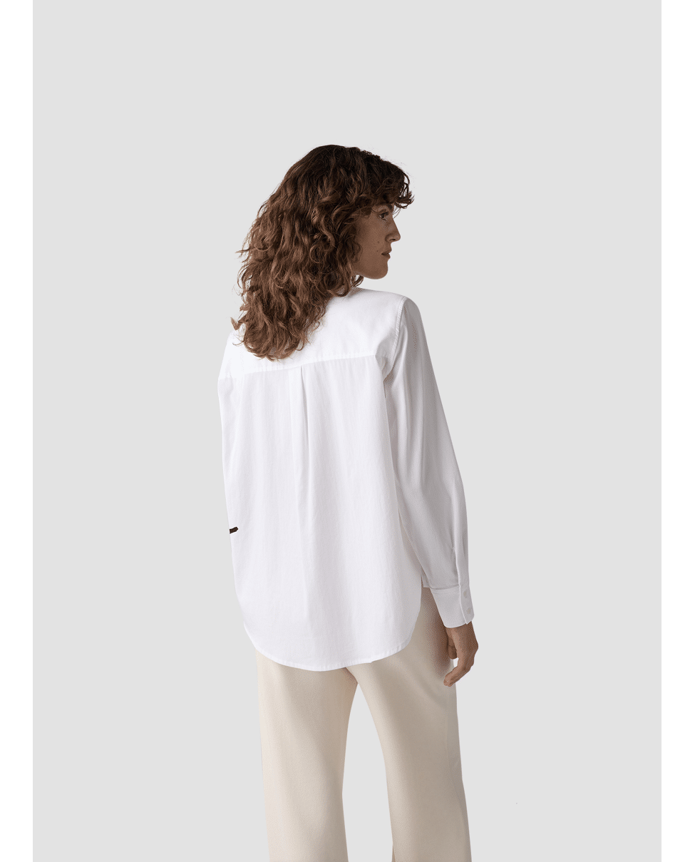 Dames blouse van LeComte met “Love it”, klassieke kraag, lange mouwen en borstzakje