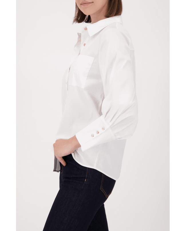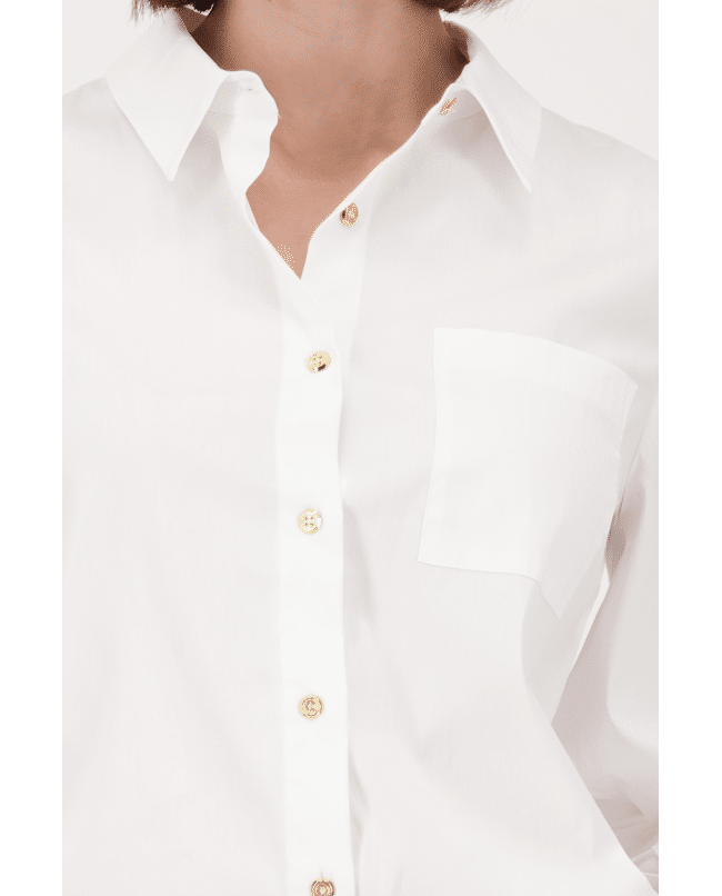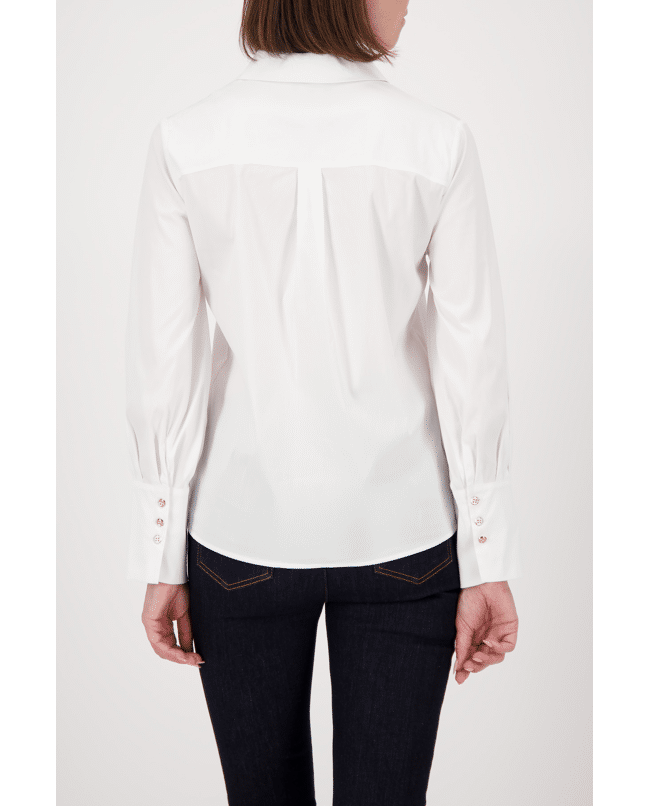 Een klassieke blouse met een verfijnde twist. De sieradenknopen geven dit tijdloze stuk net dat beetje extra.