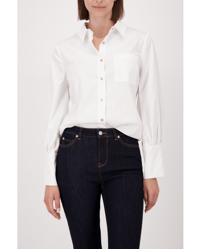 Dames blouse van Monari met sierknopen, klassieke kraag en lange mouwen