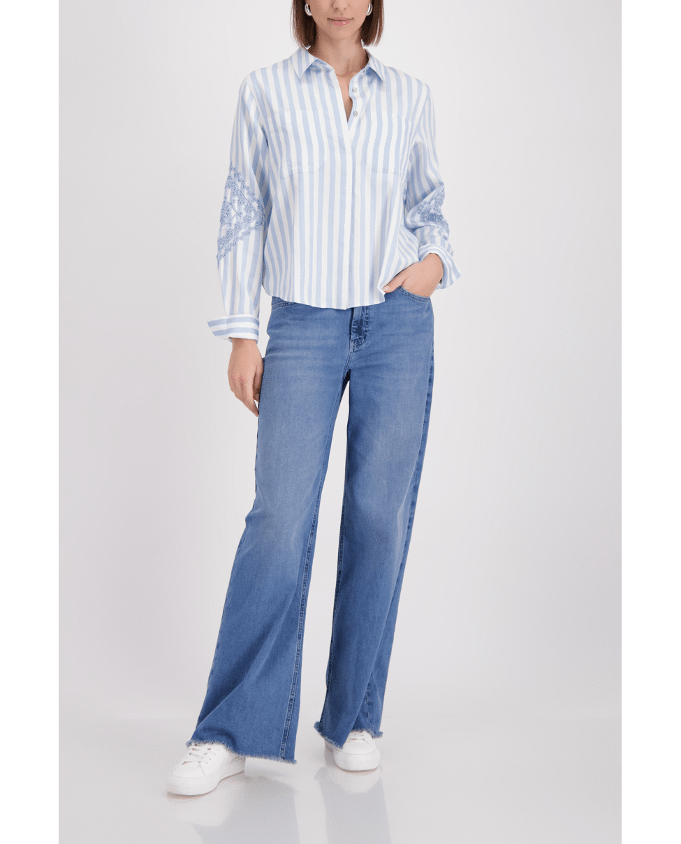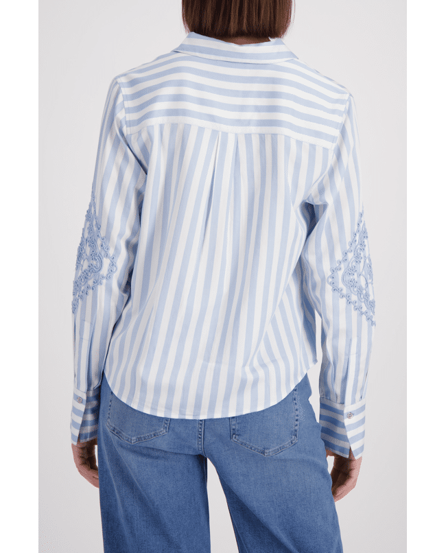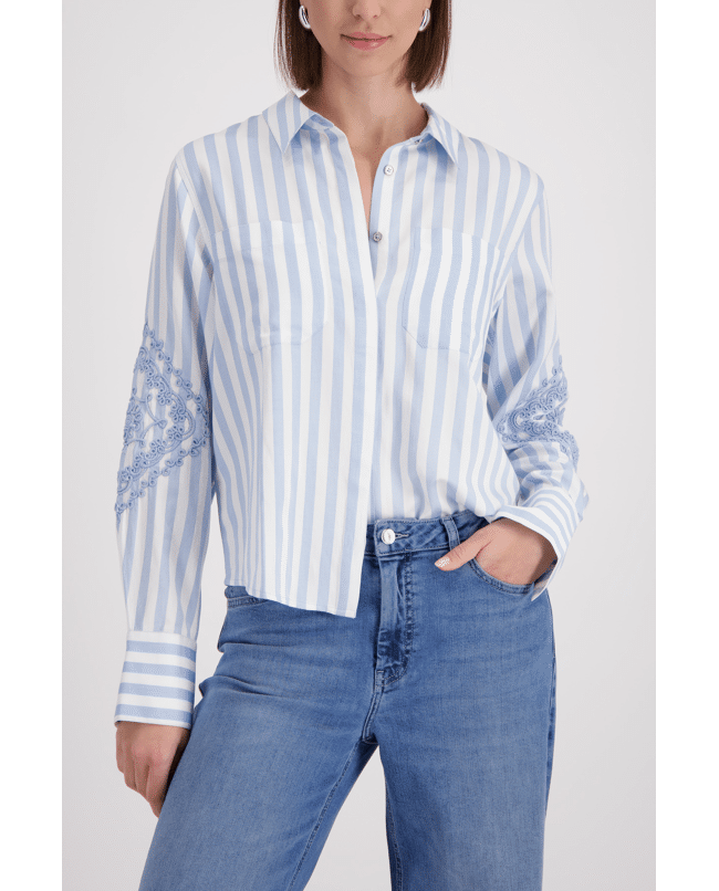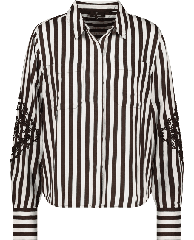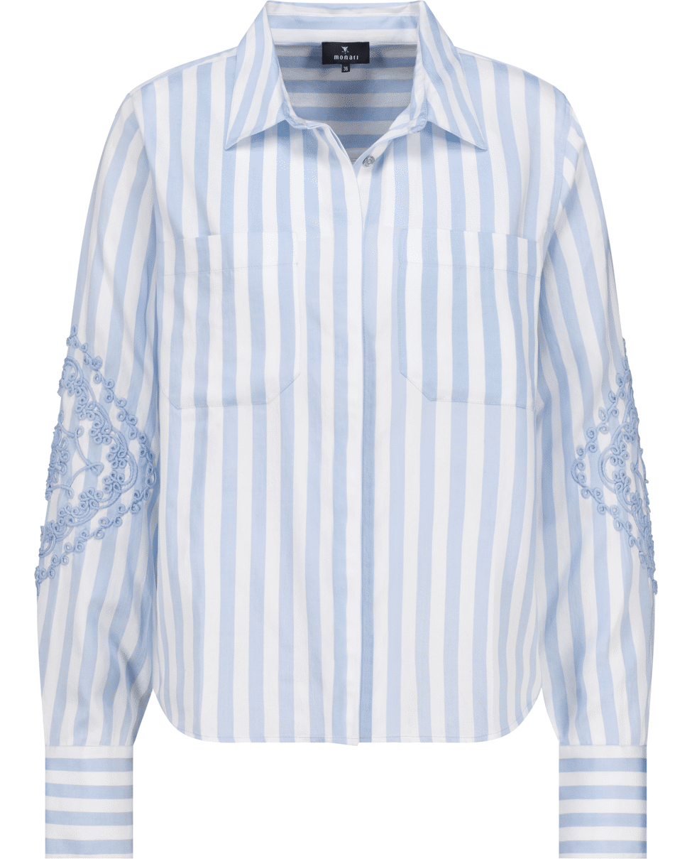 Gestreepte blouse met verfijnd borduursel op de mouwen. Voor een vrouwelijke look met een grafisch randje.