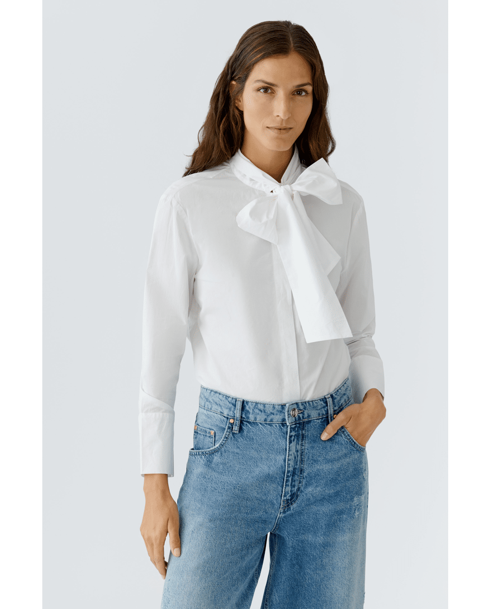 Deze Oui blouse in optic white is een tijdloos stuk met een elegante strikkraag. De lange mouwen en het klassieke ontwerp maken haar ideaal voor zowel zakelijke als feestelijke gelegenheden.