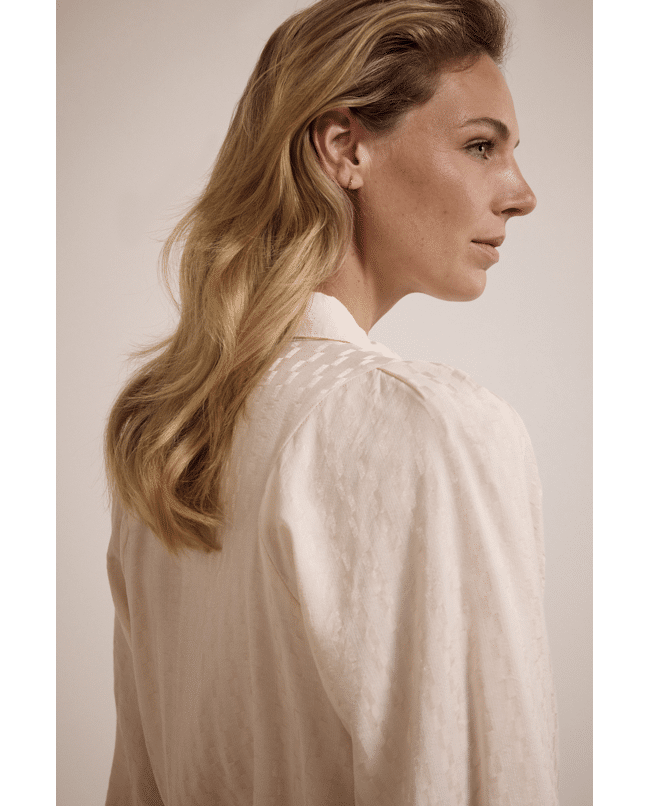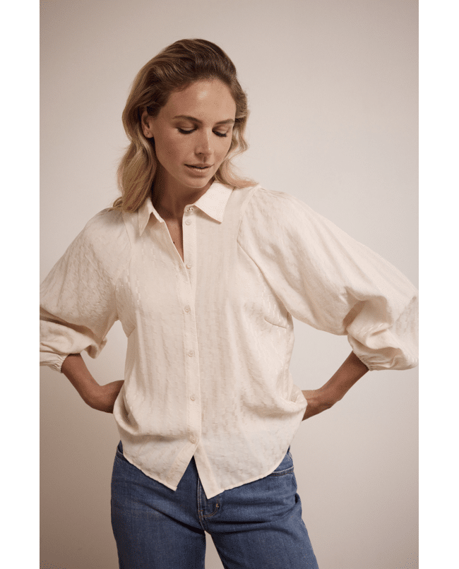 Een tijdloze blouse met een moderne twist. De pofmouwen geven dit item een vrouwelijke en krachtige uitstraling — geschikt voor elke dag, van werk tot diner.