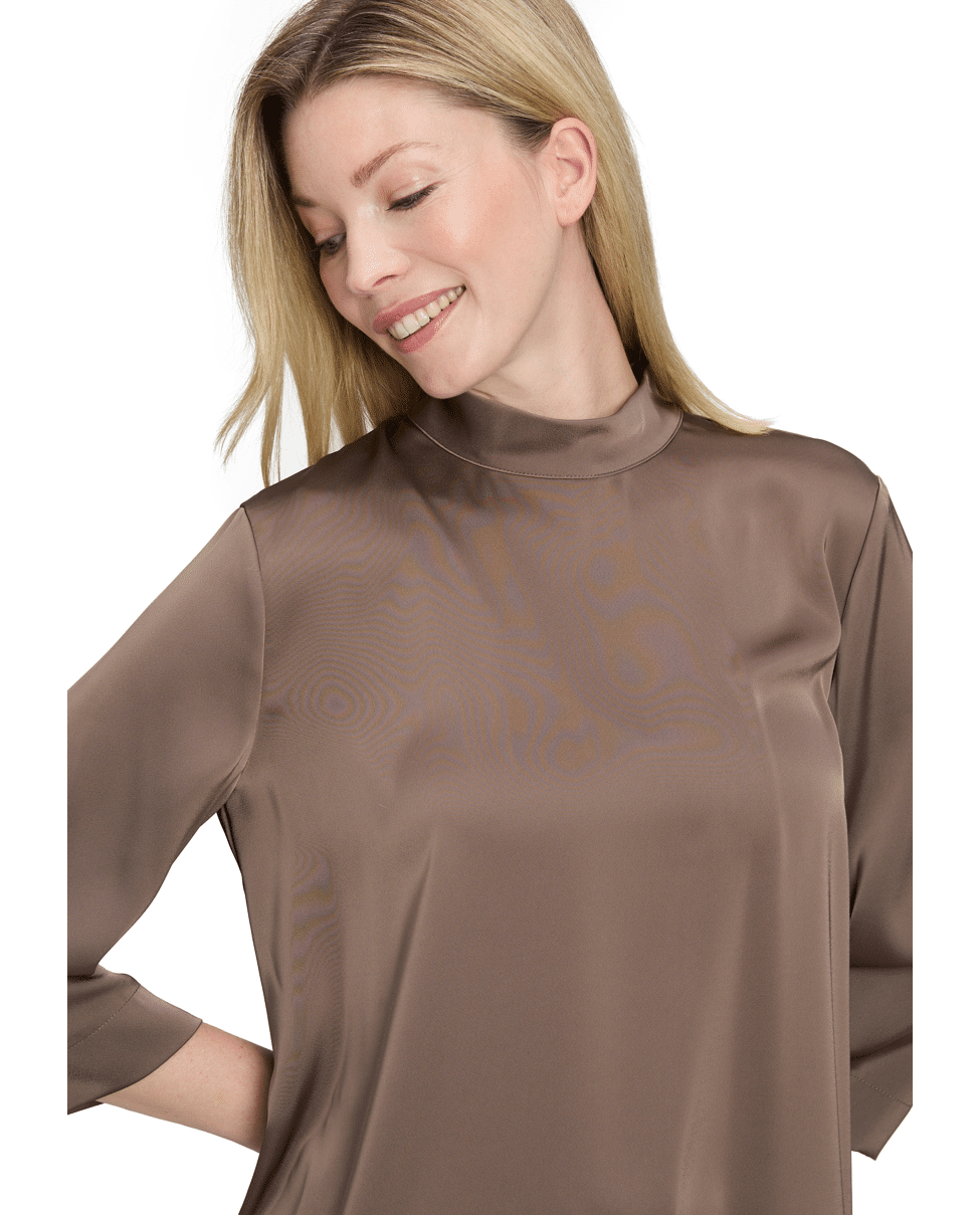 Dames blousetop van Betty Barclay met satijn-look, col kraag, 3/4 mouwen en knoopsluiting met lus op de rug