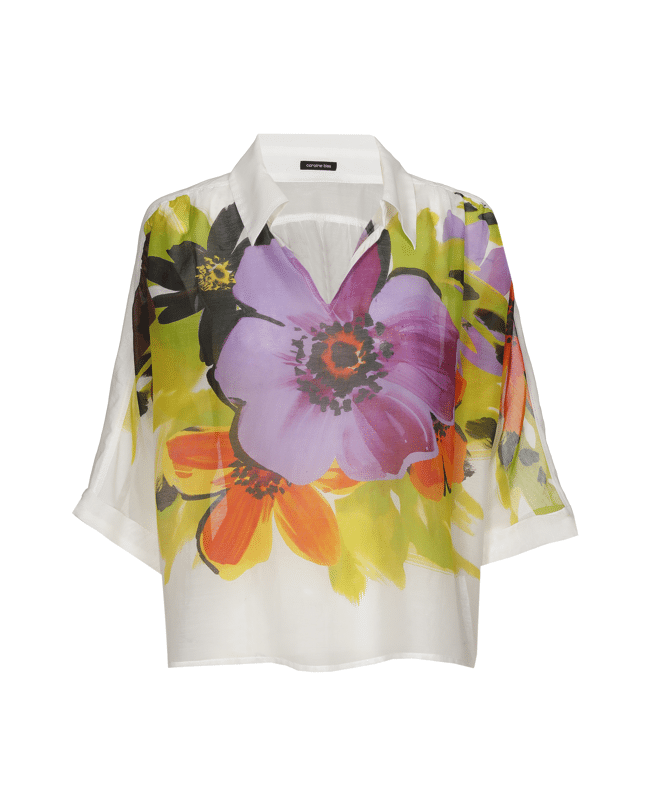 Deze transparante blouse in zijdemix is een echte blikvanger dankzij de kleurrijke bloemenprint. Perfect voor zonnige dagen of een zomerse avond uit.