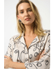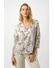 Dames blousetop van Joseph Ribkoff met illustraties van gezichten, ¾ mouwlengte, revers kraag en V-hals met knopen